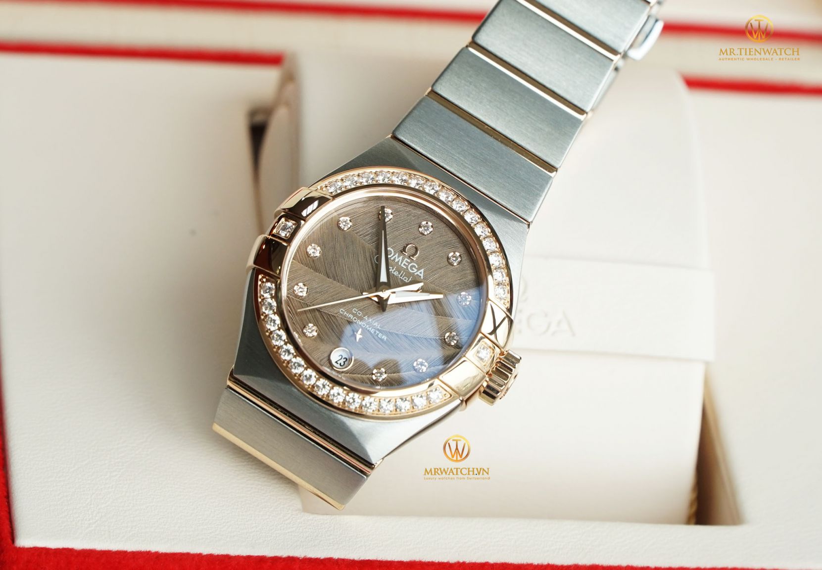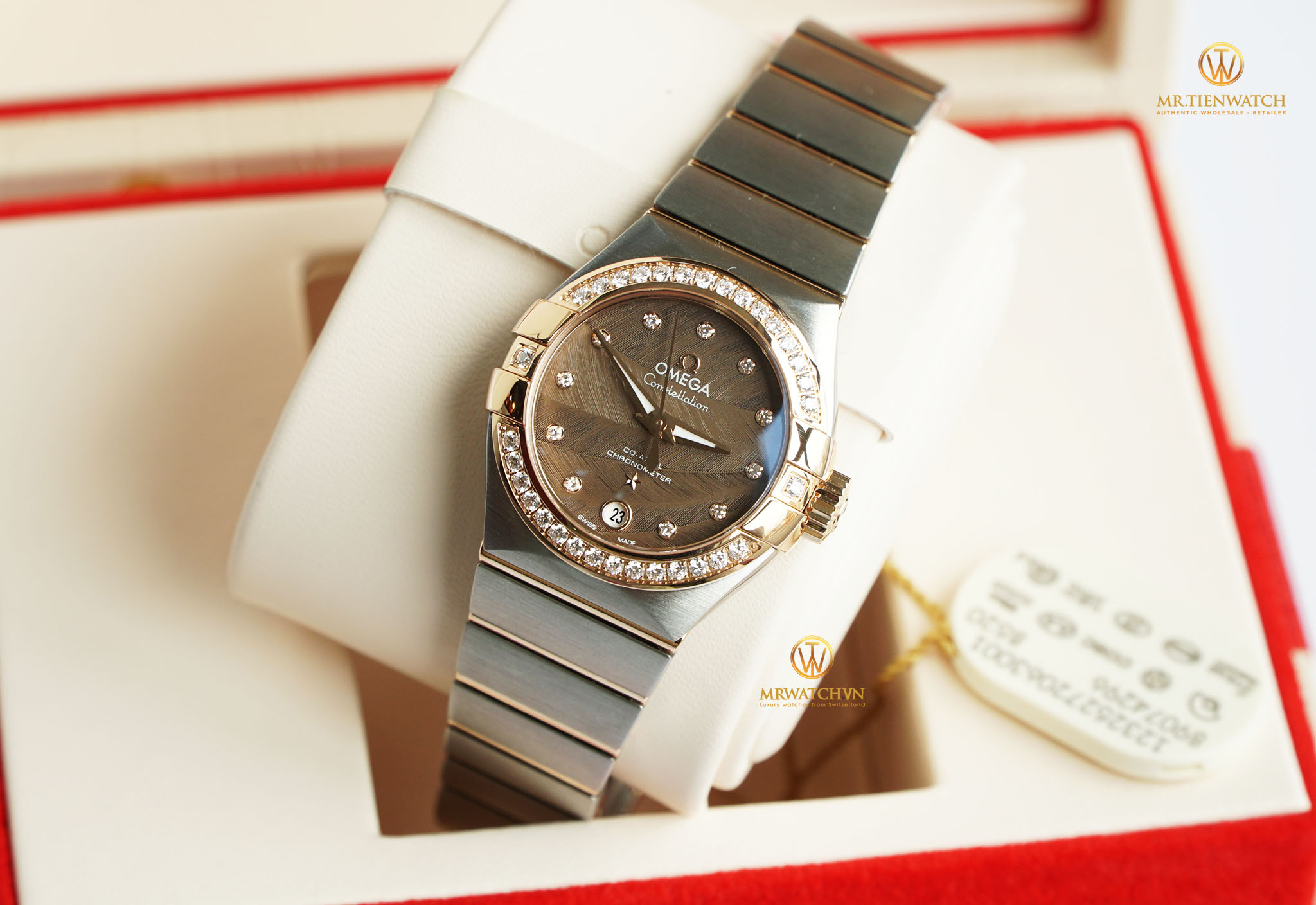 Đồng hồ Chính Hãng OMEGA CONSTELLATION CO‑AXIAL 27 MM 123.25.27.20.63.001 (12325272063001) do chúng tôi phân phối 100% là mới tinh, fullbox, được đặt mua từ những Đại Lý Phân Phối Chính Hãng lớn ở Châu Âu, có đầy đủ sổ thẻ bảo hành quốc tế chính hãng (có dấu của Đại Lý Ủy Quyền Phân Phối). Chúng tôi có sẵn hoặc có thể đặt mua bất kì một mẫu Đồng Hồ Chính Hãng OMEGA nào từ Đại Lý Ủy Quyền toàn cầu. Giá bán lẻ đến tay Khách Hàng tại Việt Nam CAM KẾT TỐT NHẤT cùng thời gian đặt hàng nhanh nhất, chỉ từ 10 đến 20 ngày làm việc.