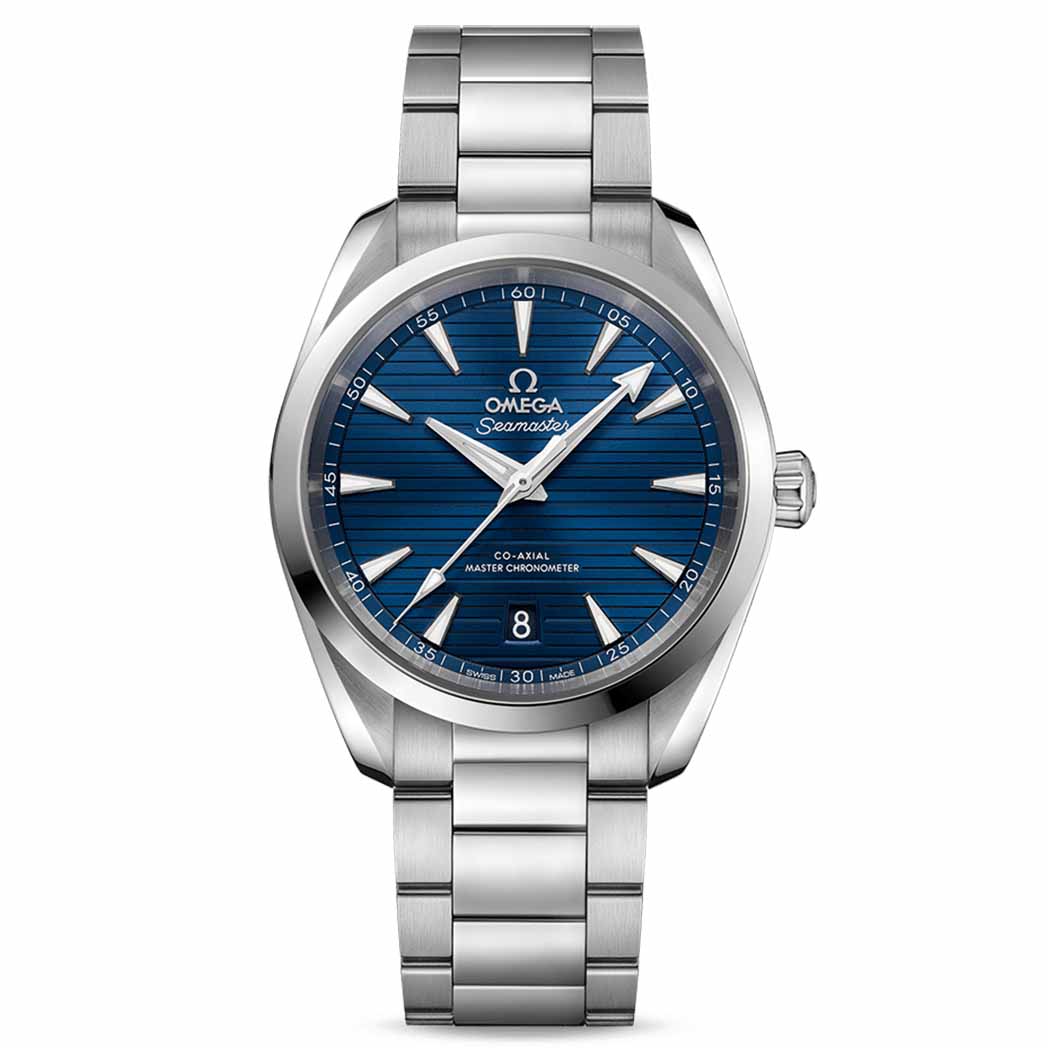 OMEGA SEAMASTER AQUA TERRA 150M CO‑AXIAL MASTER CHRONOMETER 38 MM 220.10.38.20.03.001 (22010382003001) là mẫu đồng hồ tuyệt vời trong bộ sưu tập đắt giá mang phong cách hàng hải của OMEGA. Mẫu đồng hồ 38mm này được chế tạo từ thép không gỉ, với vỏ thiết kế đối xứng và viền sóng đặc trưng ở mặt sau. Mặt đồng hồ màu xanh nước biển được tạo hiệu ứng tỏa sáng soắn ốc và hoa văn gỗ tếch xếp ngang nổi tiếng được lấy cảm hứng từ những chiếc thuyền buồm sang trọng. Cửa sổ hiển thị ngày được đặt ở vị trí 6 giờ và kim, các vạch chỉ giờ được mạ rhodium phủ Super-LumiNova (siêu dạ quang) màu trắng. Mẫu đồng hồ Seamaster Aqua Terra 220.10.38.20.03.001 được cung cấp năng lượng bởi bộ chuyển động OMEGA Master Chronometer calibre 8800, đạt chứng nhận Master Chronometer tiêu chuẩn cao nhất bởi Viện Đo lường Liên bang Thụy Sĩ (METAS).