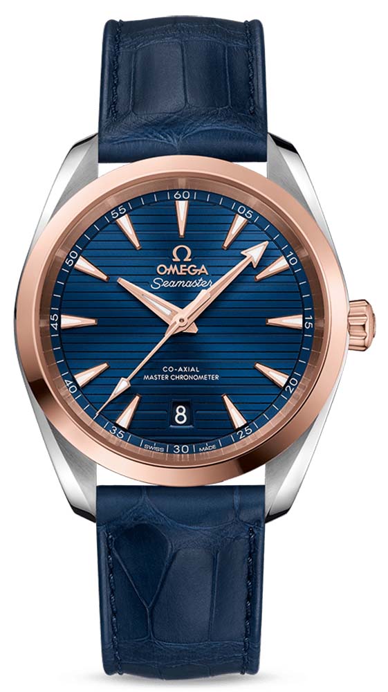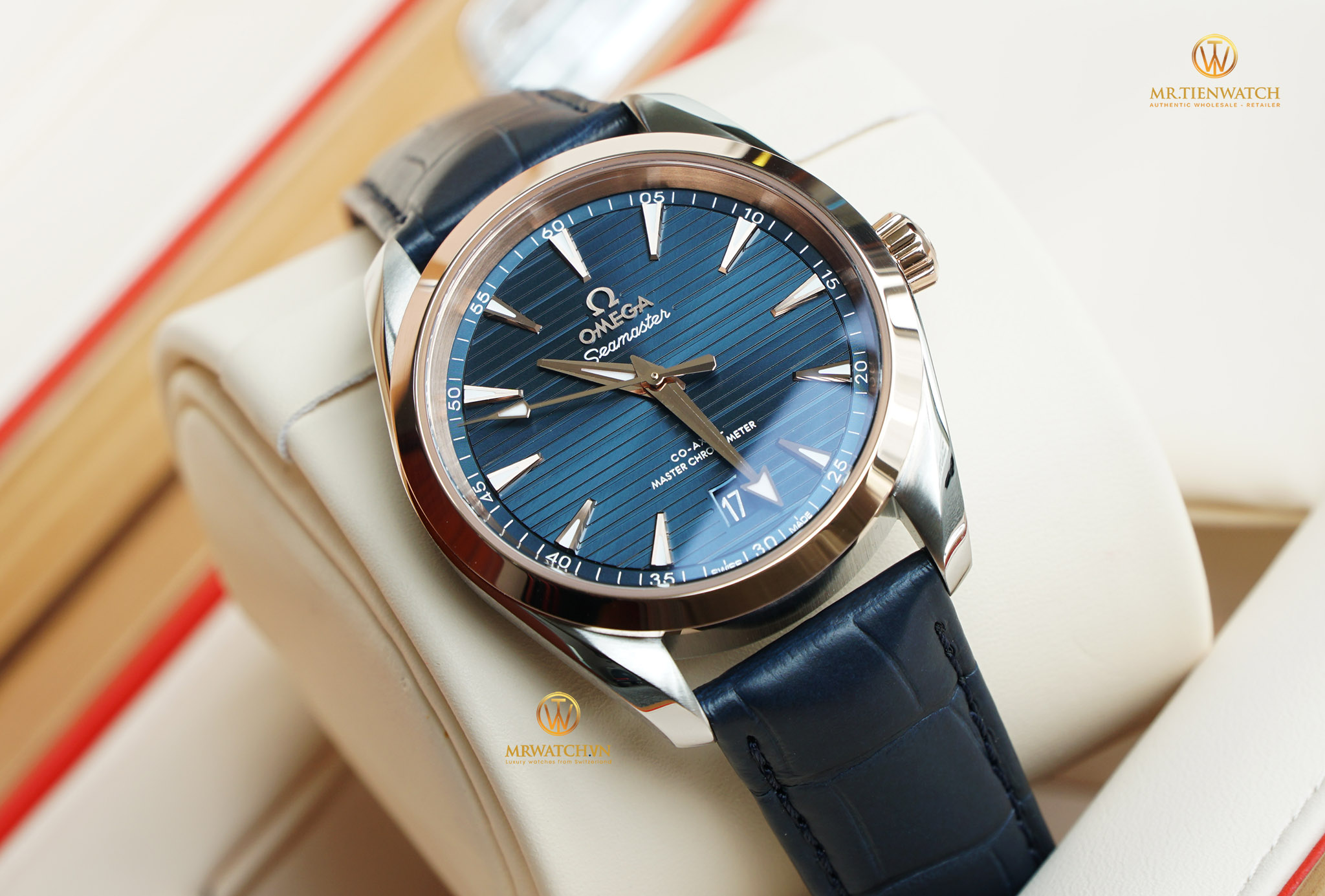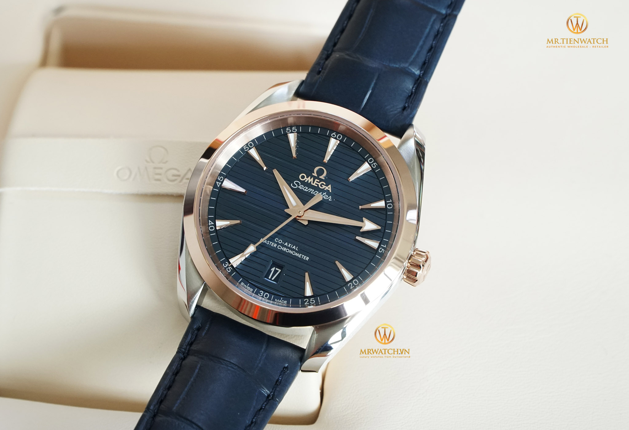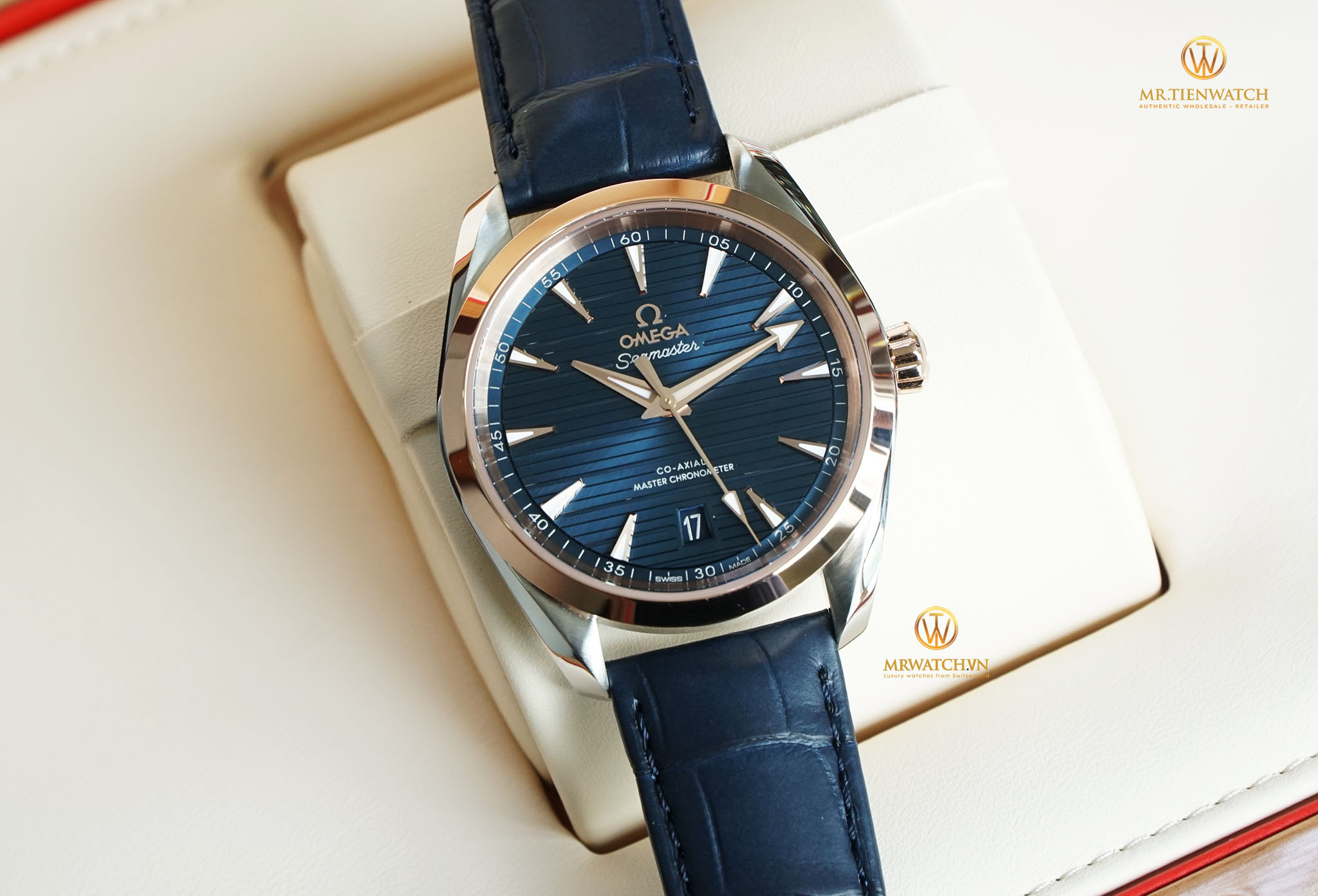 Seamaster Aqua Terra là mẫu đồng hồ tuyệt vời trong bộ sưu tập đắt giá mang phong cách hàng hải của OMEGA. Mẫu đồng hồ 38mm này được chế tạo từ thép không gỉ kết hợp với vàng hồng sedna 18k độc quyền của OMEGA, với vỏ thiết kế đối xứng và viền sóng đặc trưng ở mặt sau. Mặt đồng hồ màu xanh được tạo hiệu ứng tỏa sáng soắn ốc và hoa văn gỗ tếch xếp ngang nổi tiếng được lấy cảm hứng từ những chiếc thuyền buồm sang trọng. Cửa sổ hiển thị ngày được đặt ở vị trí 6 giờ và kim, các vạch chỉ giờ được mạ rhodium phủ Super-LumiNova (siêu dạ quang) màu trắng. Mẫu đồng hồ Seamaster Aqua Terra 220.23.38.20.03.001 được cung cấp năng lượng bởi bộ chuyển động OMEGA Master Chronometer calibre 8900, đạt chứng nhận Master Chronometer tiêu chuẩn cao nhất bởi Viện Đo lường Liên bang Thụy Sĩ (METAS).