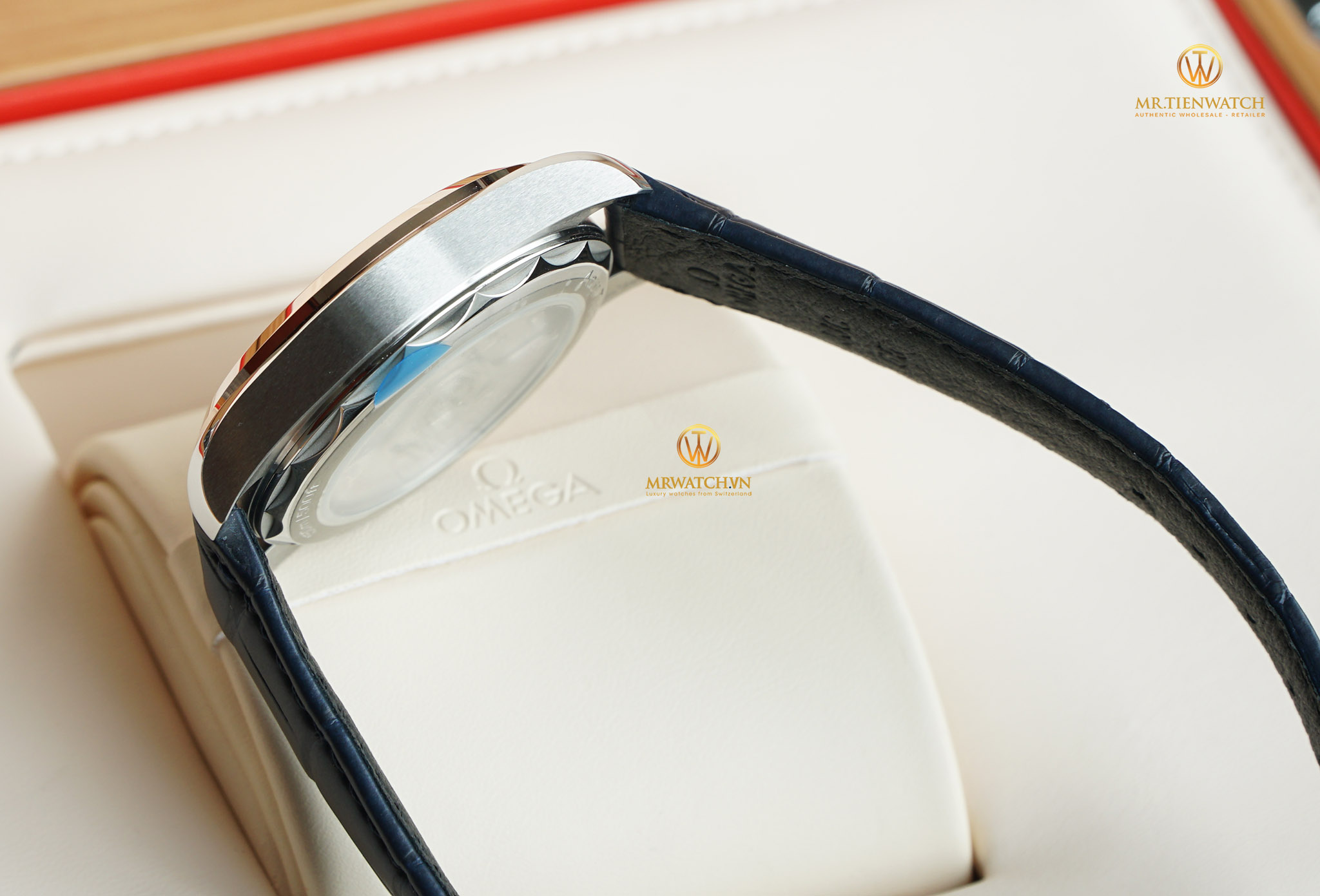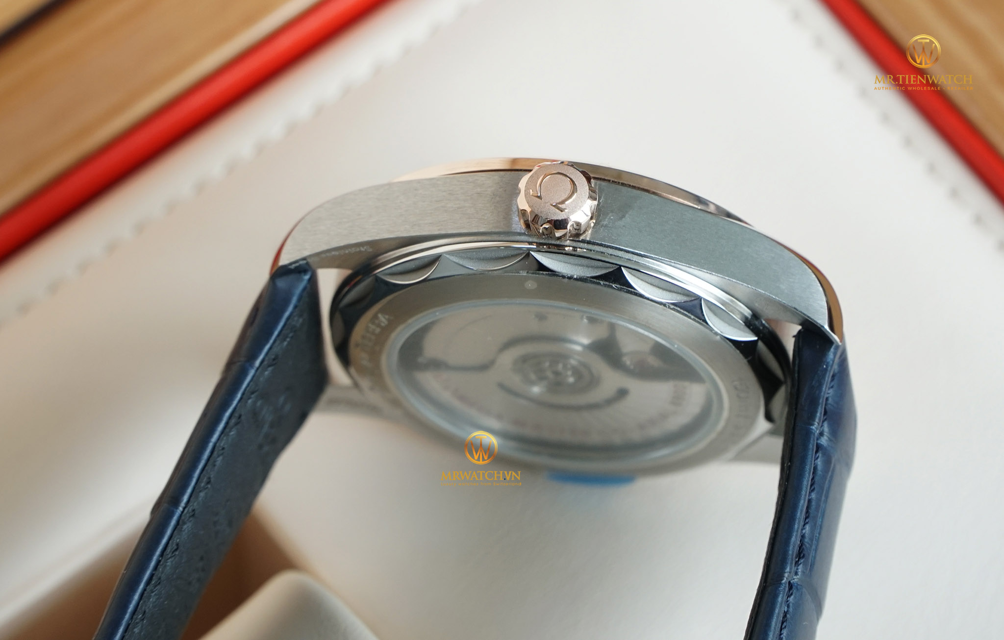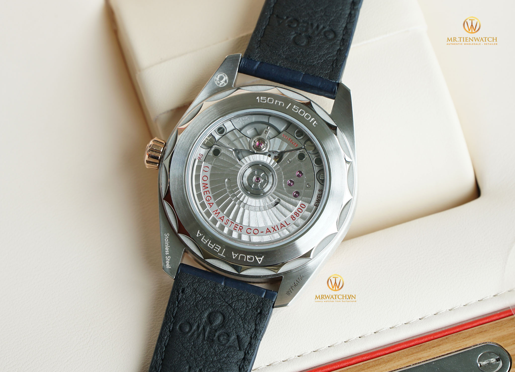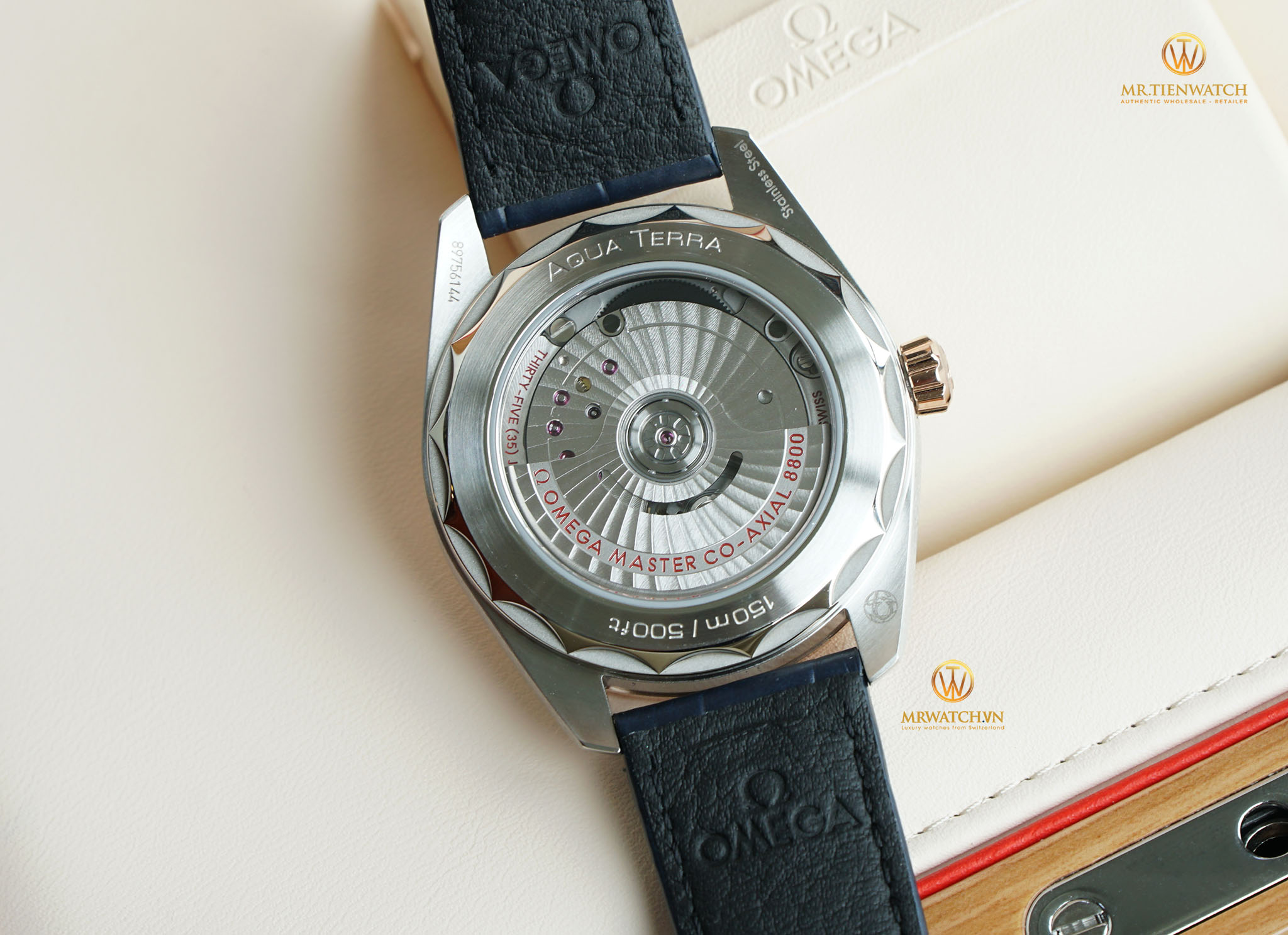 Seamaster Aqua Terra là mẫu đồng hồ tuyệt vời trong bộ sưu tập đắt giá mang phong cách hàng hải của OMEGA. Mẫu đồng hồ 38mm này được chế tạo từ thép không gỉ kết hợp với vàng hồng sedna 18k độc quyền của OMEGA, với vỏ thiết kế đối xứng và viền sóng đặc trưng ở mặt sau. Mặt đồng hồ màu xanh được tạo hiệu ứng tỏa sáng soắn ốc và hoa văn gỗ tếch xếp ngang nổi tiếng được lấy cảm hứng từ những chiếc thuyền buồm sang trọng. Cửa sổ hiển thị ngày được đặt ở vị trí 6 giờ và kim, các vạch chỉ giờ được mạ rhodium phủ Super-LumiNova (siêu dạ quang) màu trắng. Mẫu đồng hồ Seamaster Aqua Terra 220.23.38.20.03.001 được cung cấp năng lượng bởi bộ chuyển động OMEGA Master Chronometer calibre 8900, đạt chứng nhận Master Chronometer tiêu chuẩn cao nhất bởi Viện Đo lường Liên bang Thụy Sĩ (METAS).