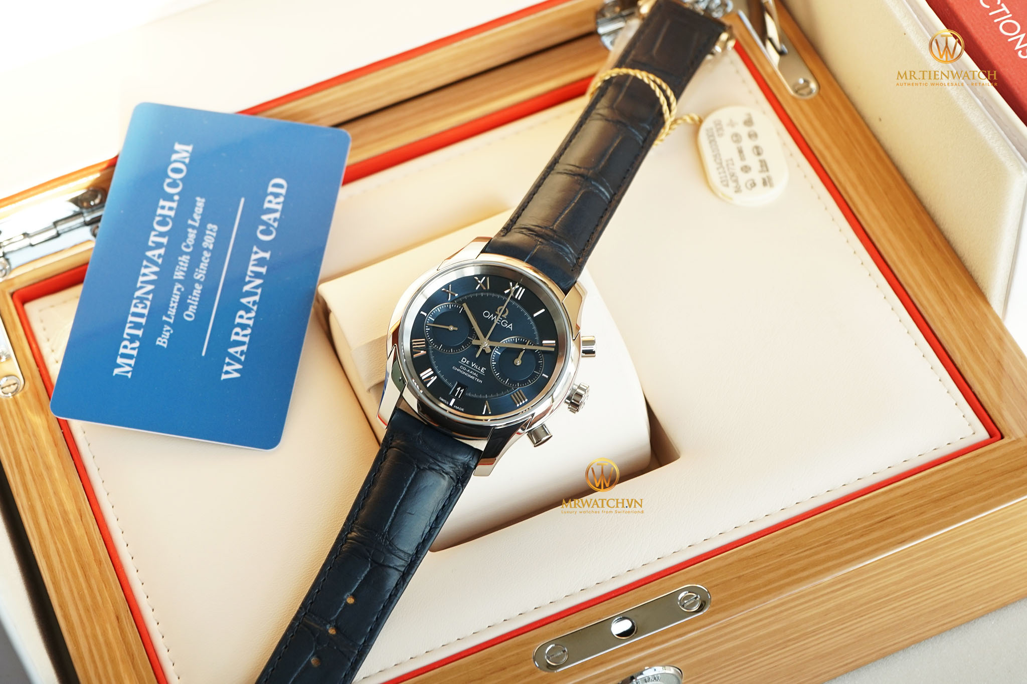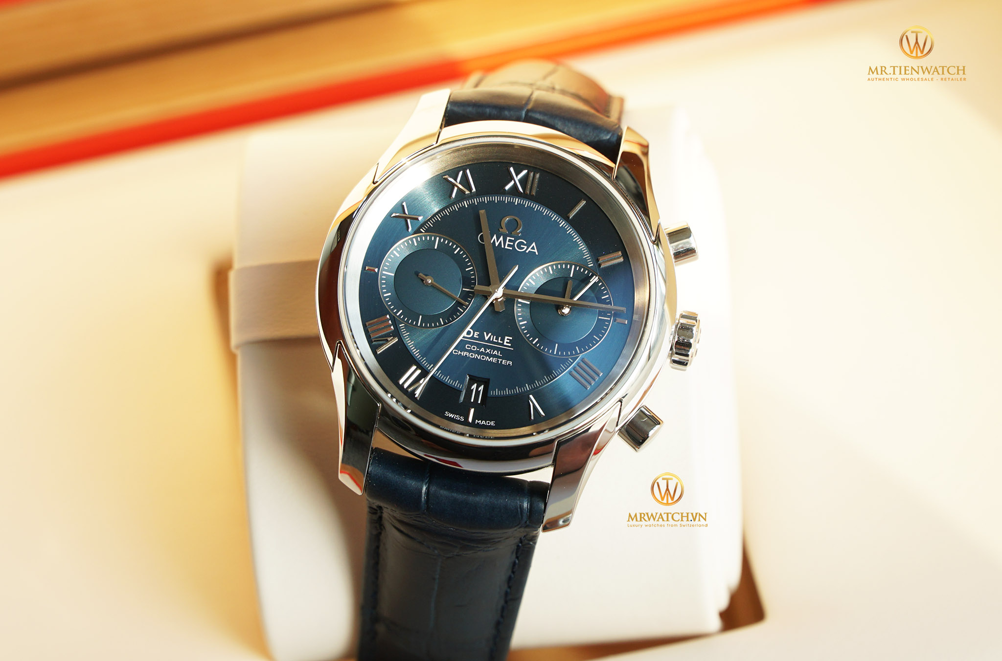 Đồng hồ Chính Hãng OMEGA DE-VILLE CO‑AXIAL CHRONOGRAPH 42 MM 431.13.42.51.03.001 (43113425103001) do chúng tôi phân phối 100% là mới tinh, fullbox, được đặt mua từ những Đại Lý Phân Phối Chính Hãng lớn ở Châu Âu, có đầy đủ sổ thẻ bảo hành quốc tế chính hãng (có dấu của Đại Lý Ủy Quyền Phân Phối).