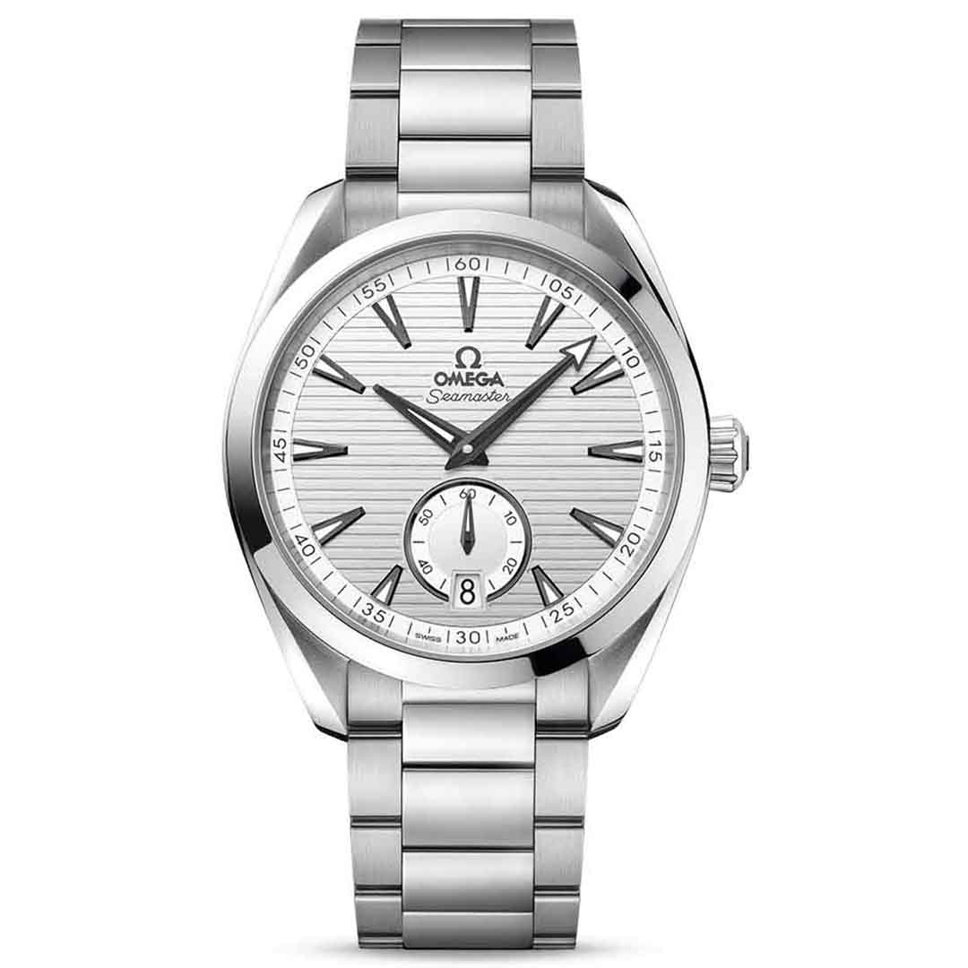OMEGA SEAMASTER AQUA TERRA 150M CO‑AXIAL MASTER CHRONOMETER SMALL SECONDS 41 MM 220.10.41.21.02.002 (22010412102002) là mẫu đồng hồ tuyệt vời trong bộ sưu tập đắt giá mang phong cách hàng hải của OMEGA. Mẫu đồng hồ 41 mm này được chế tác từ thép không gỉ, với vỏ thiết kế đối xứng và viền sóng đặc trưng ở mặt sau. Mặt số đồng hồ màu bạc mang họa tiết chải xước và hoa văn gỗ tếch xếp dọc nổi tiếng được lấy cảm hứng từ những chiếc thuyền buồm sang trọng. Cửa sổ hiển thị ngày và mặt số phụ nhỏ màu trắng đục viền đen được đặt ở vị trí 6h. Kim, các vạch chỉ giờ màu đen được phủ Super-LumiNova (siêu dạ quang) màu trắng. Mẫu đồng hồ sử dụng bộ chuyển động OMEGA Co-Axial Master Chronometer calibre 8916, đạt chứng nhận Master Chronometer tiêu chuẩn cao nhất bởi Viện Đo lường Liên bang Thụy Sĩ (METAS).