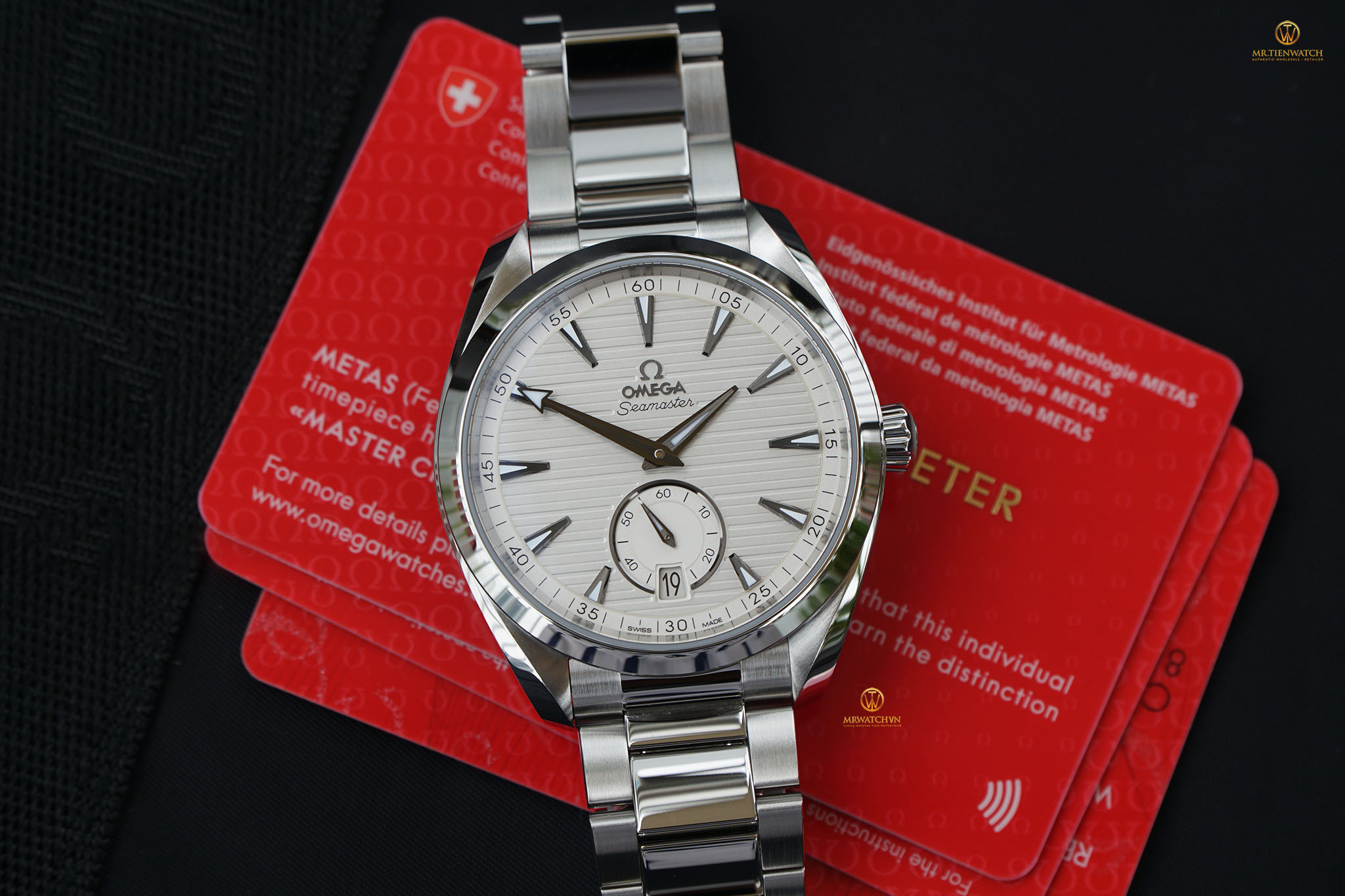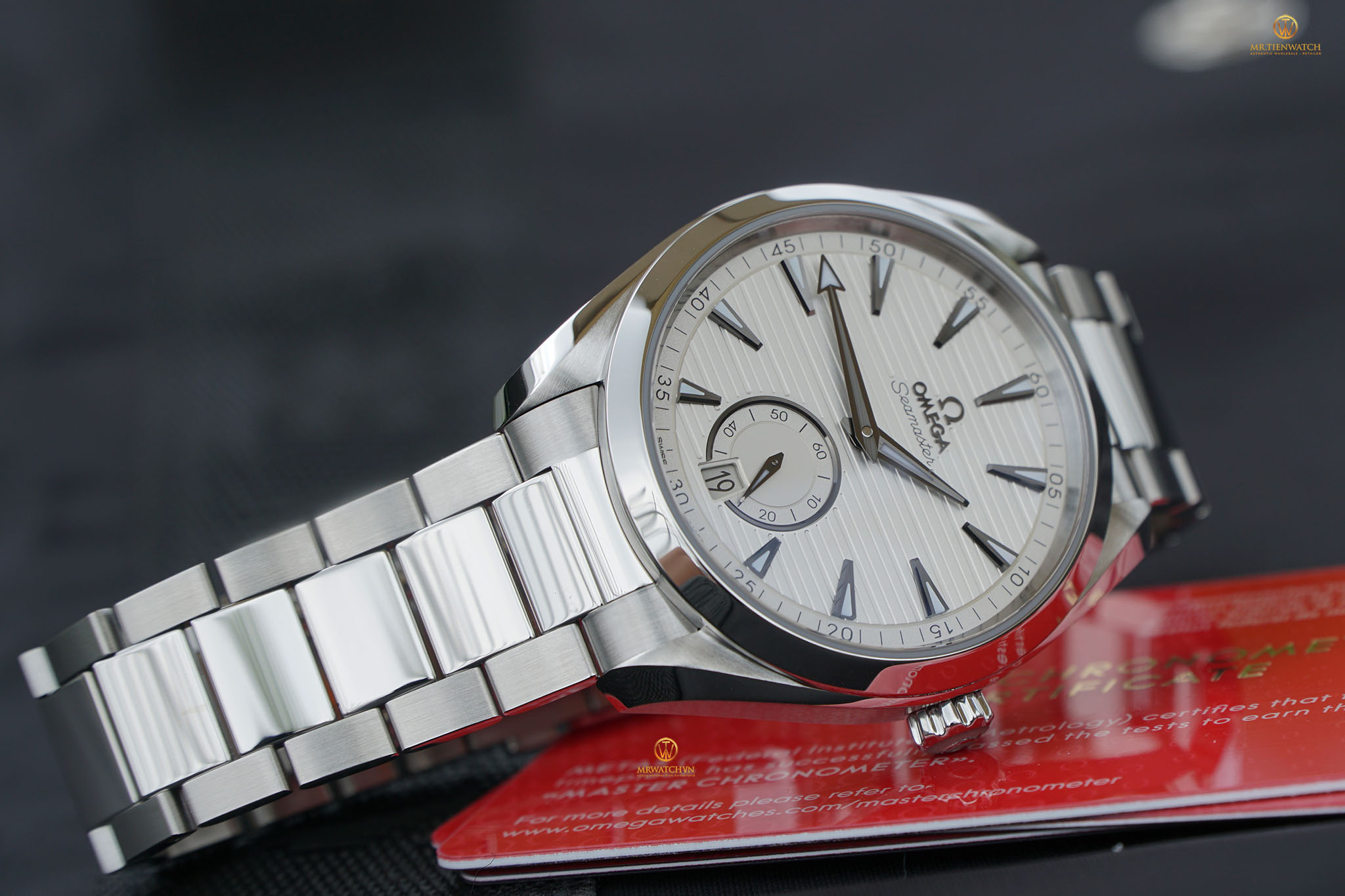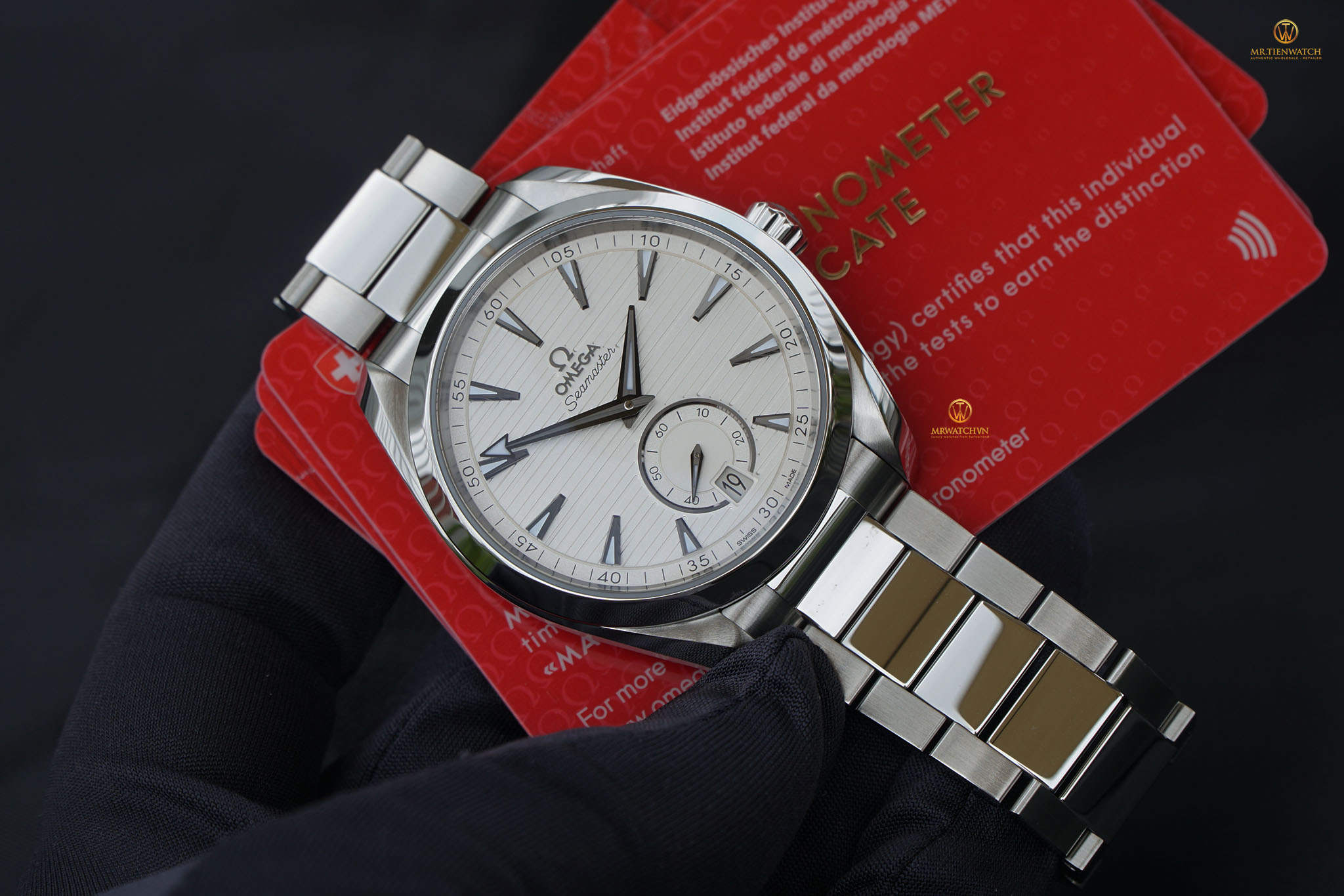 Đồng hồ Chính Hãng OMEGA SEAMASTER AQUA TERRA 150M CO‑AXIAL MASTER CHRONOMETER SMALL SECONDS 41 MM 220.10.41.21.02.002 (22010412102002) do chúng tôi phân phối 100% là mới tinh, fullbox, được đặt mua từ những Đại Lý Phân Phối Chính Hãng lớn ở Châu Âu, có đầy đủ sổ thẻ bảo hành quốc tế chính hãng (có dấu của Đại Lý Ủy Quyền Phân Phối). Chúng tôi có sẵn hoặc có thể đặt mua bất kì một mẫu Đồng Hồ Chính Hãng OMEGA nào từ Đại Lý Ủy Quyền toàn cầu. Giá bán lẻ đến tay Khách Hàng tại Việt Nam CAM KẾT TỐT NHẤT cùng thời gian đặt hàng nhanh nhất, chỉ từ 10 đến 20 ngày làm việc.