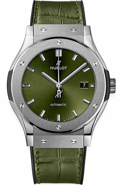 Đồng hồ HUBLOT CLASSIC FUSION Titanium Green 42MM - 542.NX.8970.LR do chúng tôi phân phối 100% là hàng chính hãng, được đặt mua từ những Đại Lý Phân Phối Chính Hãng lớn ở Châu Âu, có đầy đủ sổ thẻ bảo hành quốc tế với Giá đã chiết khấu tốt nhất.