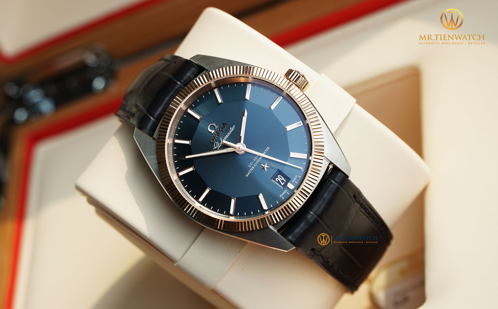 Tuy nhiên điều thực sự làm cho chiếc đồng hồ này trở nên đặc biệt là mặt số màu xanh da trời, mang phong cách "Pie Pan" cổ điển được lấy cảm hứng từ mẫu Constellation đầu tiên 1952. Trái tim của mẫu đồng hồ này là bộ chuyển động Co-Axial Master Chronometer Calibre 8900 với công nghệ chống từ tính mang tính cách mạng của OMEGA. Mẫu Omega Constellation 130.23.39.21.03.001 này đi kèm dây đeo tuyệt đẹp bằng da màu xanh kết hợp hoàn hảo cùng khóa gập tiện lợi.