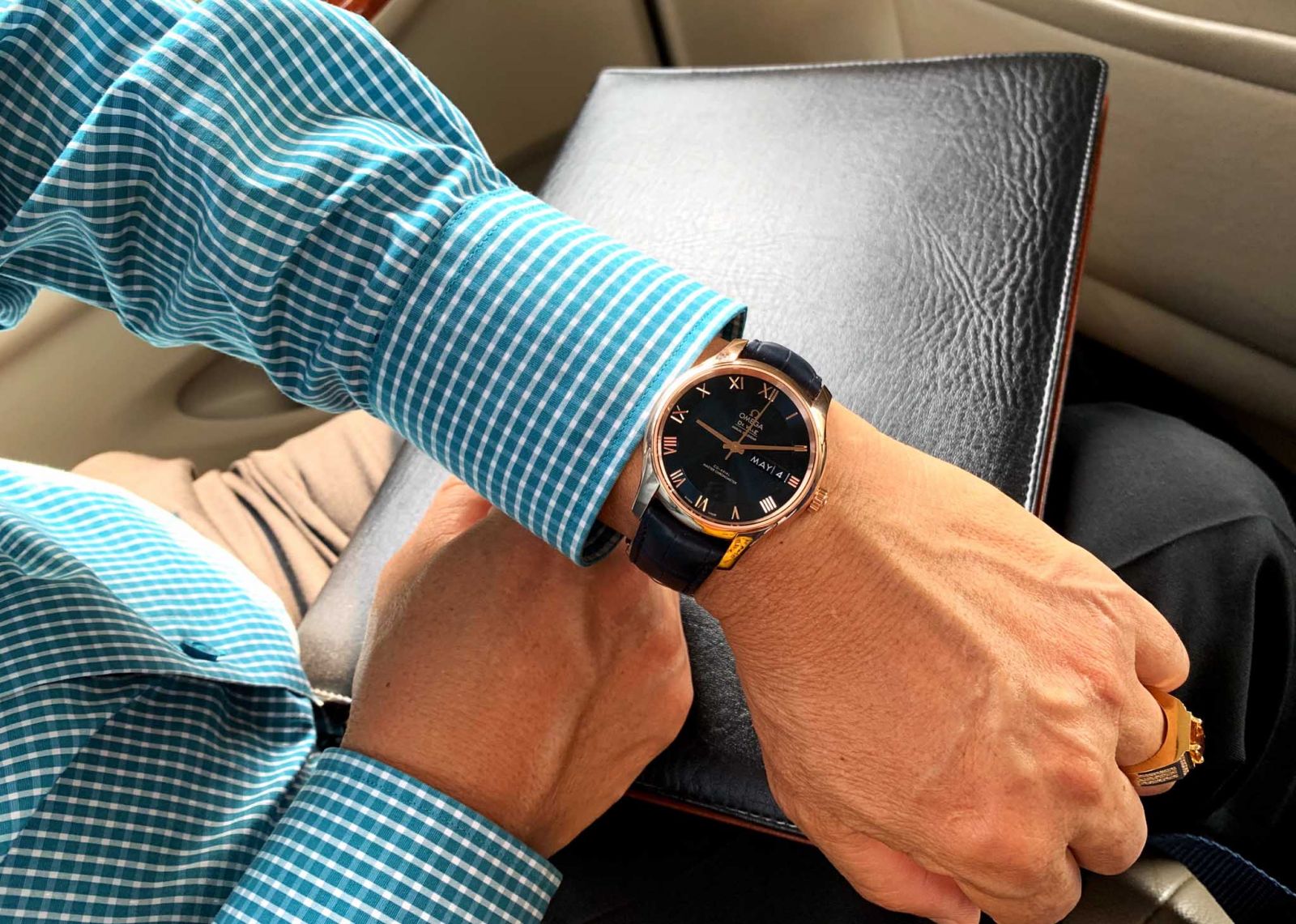 Với thiết kế càng bo như này, phần tai núm và càng sẽ gọn hơn trong thân vỏ nên sẽ ôm gọn cổ tay hơn và cảm giác đồng hồ sẽ nhỏ hơn những mẫu khác cùng đường kính mặt. Tuy nhiên đòi hỏi người đeo cũng phải có cổ tay trung bình đổ lên nếu không muốn 2 càng không thể ôm gọn, tầm 16 cm là thoải mái lên tay. Hình ảnh một mẫu Omega Deville Hourvion lên tay Khách hàng của chúng tôi với cổ tay trung bình, cực kì sang trọng và đẳng cấp.