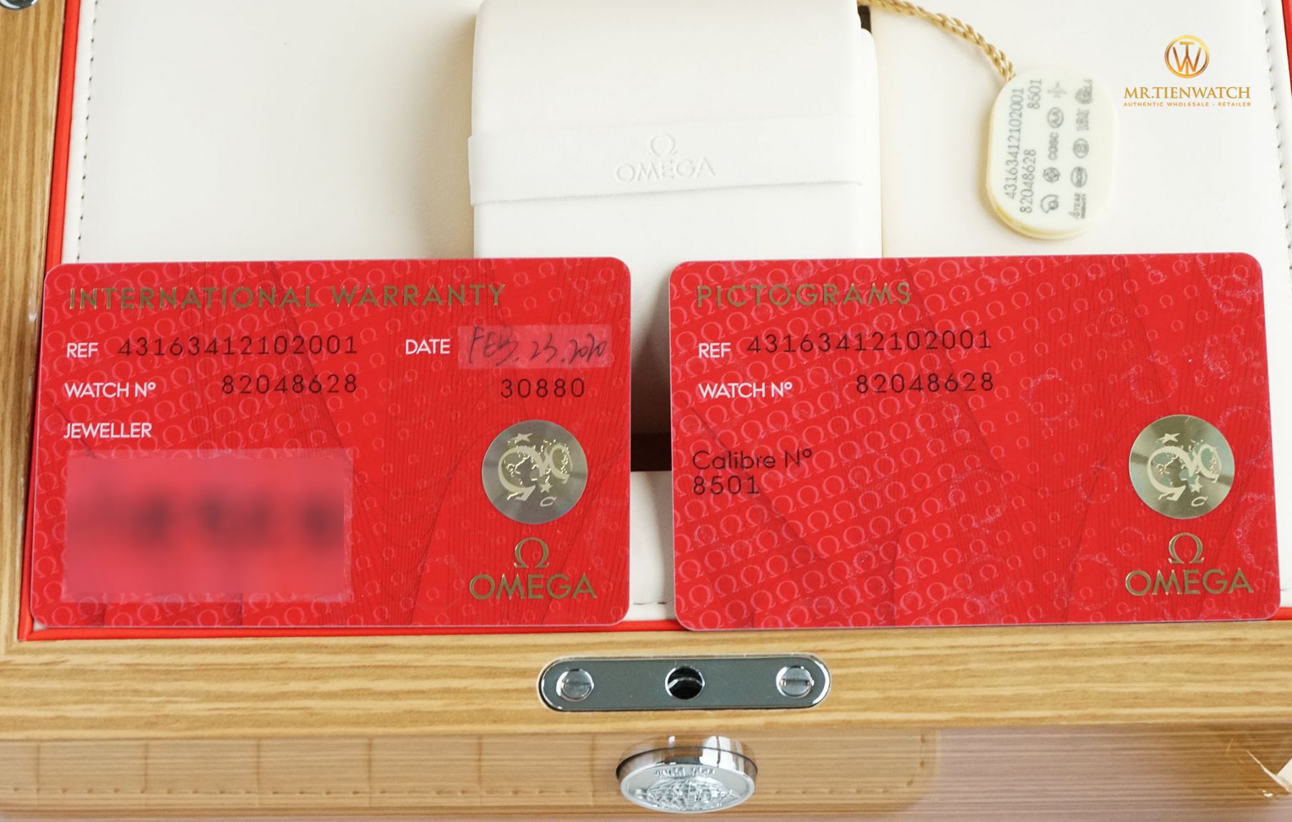 Tuy là một model cũ, nhưng sản phẩm chúng tôi bán ra là mới tinh, fullbox, đi kèm thẻ bảo hành quốc tế chính hãng Omega 05 năm với ngày ghi trên thẻ là 23/02/2020, có nghĩa là sản phẩm vẫn được bảo hành chính Hãng Omega 05 năm nữa. Quý khách có thể hoàn toàn yên tâm sử dụng với chế độ Service tốt nhất từ chính Hãng. Còn riêng với Omega, một sản phẩm có tuổi đời sử dụng từ 10 đến 20 năm là rất bình thường, và nếu là một phiên bản vàng khối thì vẻ đẹp này còn gần như vĩnh cửu với thời gian.