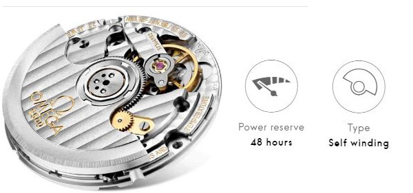 MÁY ĐỒNG HỒ : CAL.2500 CO-AXIAL CHRONOMETER. Chiếc đồng hồ được vận hành bởi cỗ máy có tên là Calibre 2500. Đây là cỗ máy tự động lên dây cót có chứa bộ thoát đồng trục đầu tiên trên thế giới và do mang tính lịch sử cũng như ổn định cao, nên Omega đã quyết định vẫn giữ nguyên nó cho dòng De ville. Cal.2500 được dựa trên nền tảng của máy cal.1120 ( giới thiệu năm 1994), nó dựa trên cấu trúc sửa đổi rất nhiều từ máy ETA 2892.A2.
