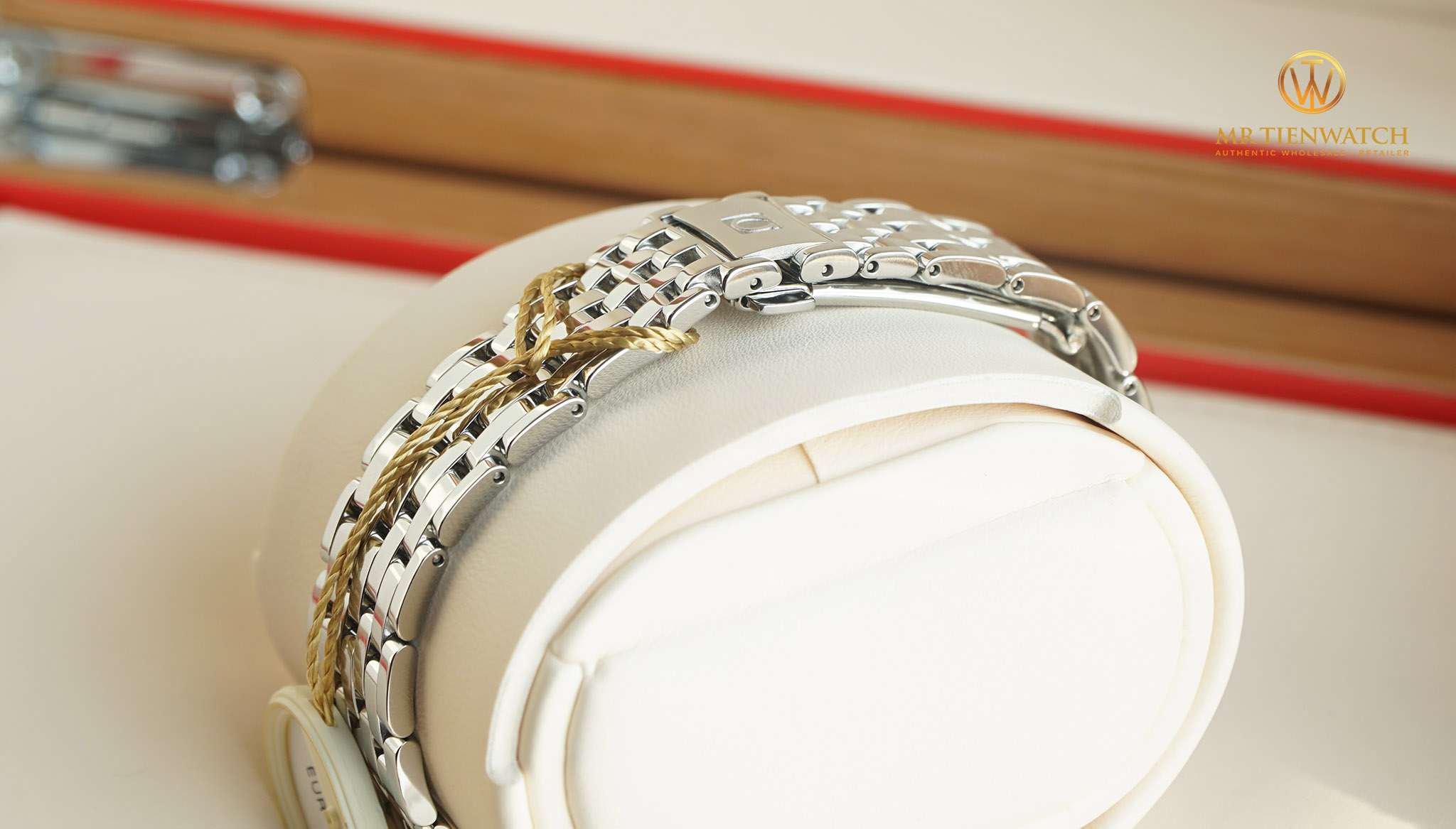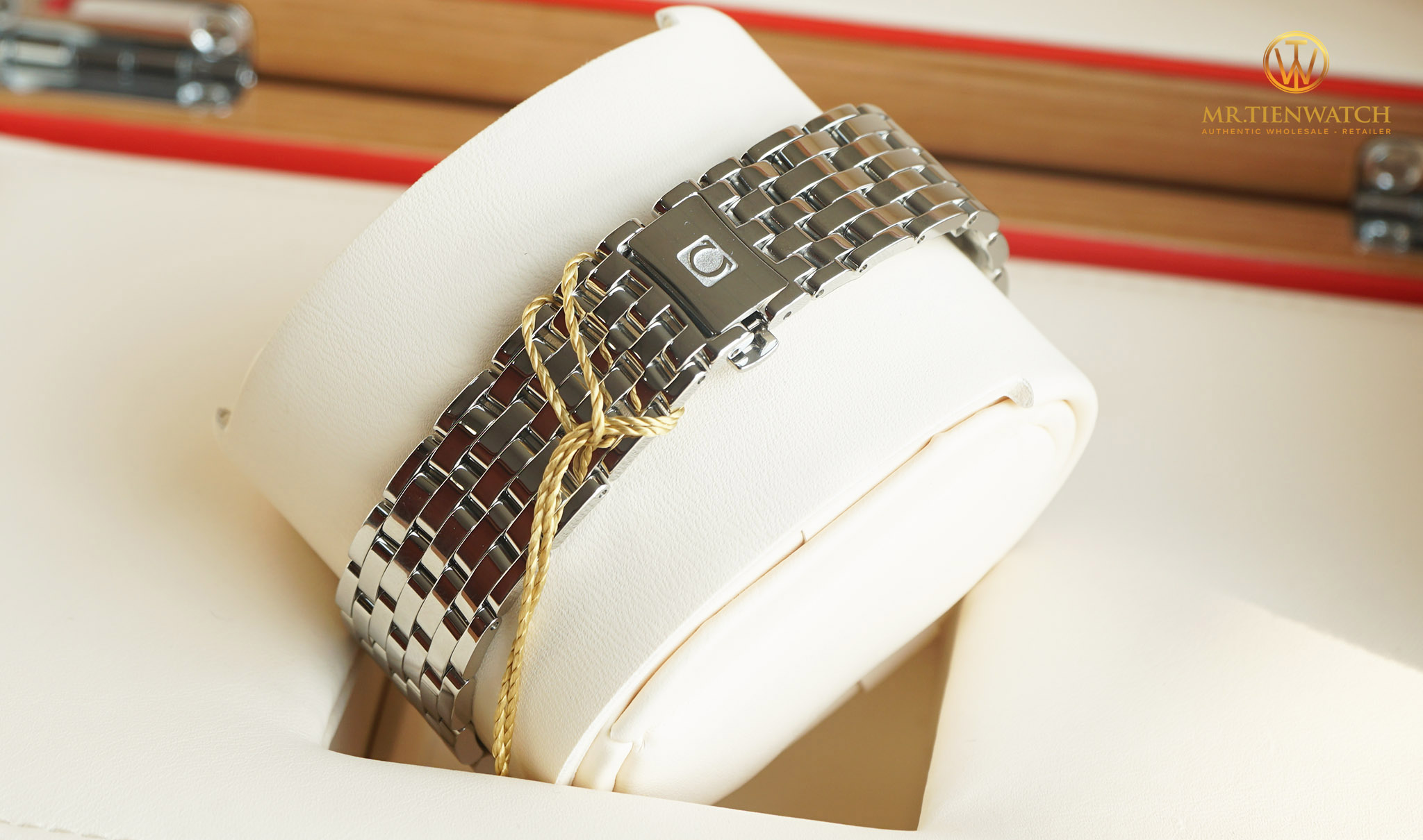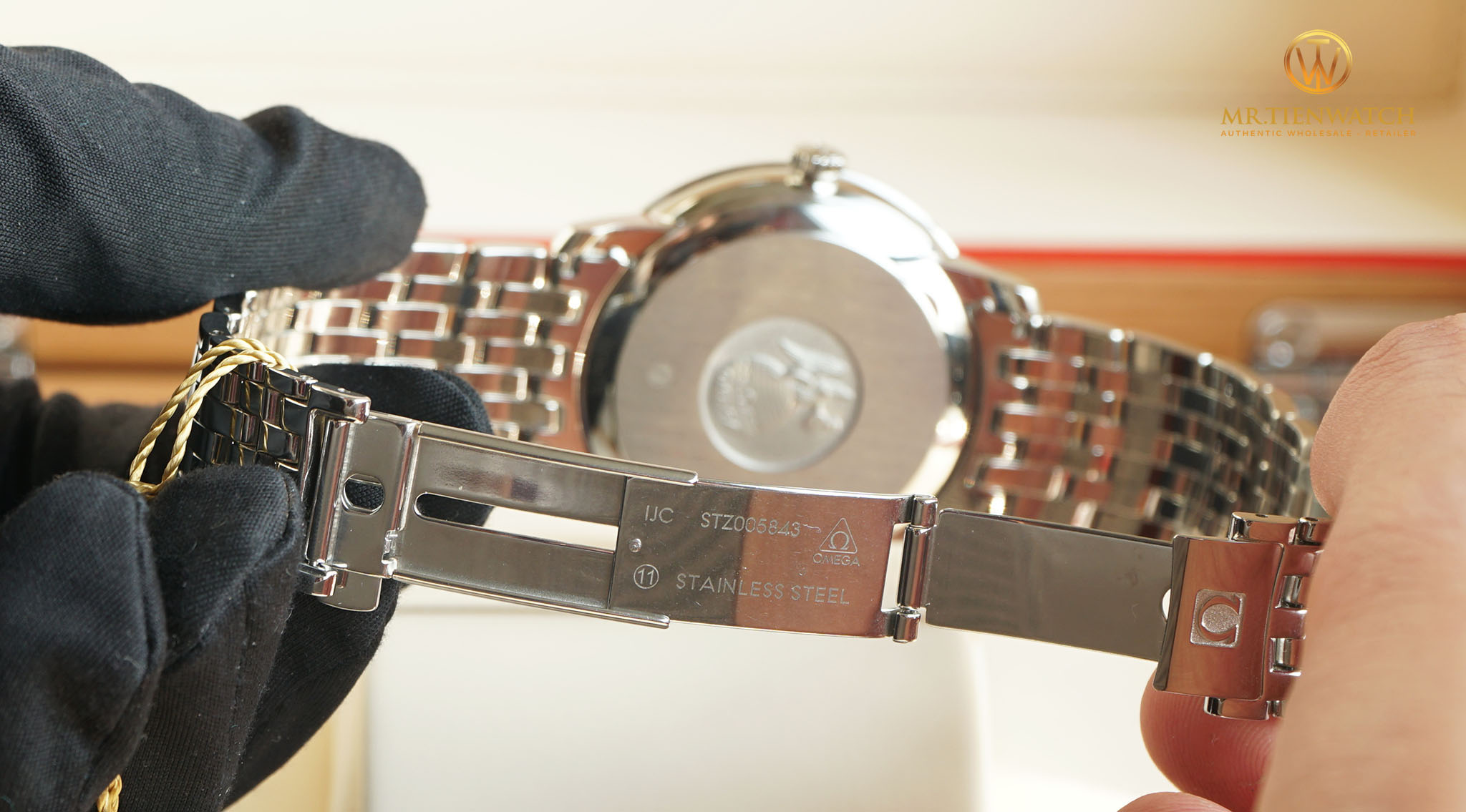 Cả hai chiếc đồng hồ này đều được trang bị bộ dây đeo bằng thép không gỉ, được hoàn thiện với chất lượng rất tốt, ôm tay và chắc chắn. Nó đi kèm với một khóa bướm có dập nổi lô gô hãng Omega.