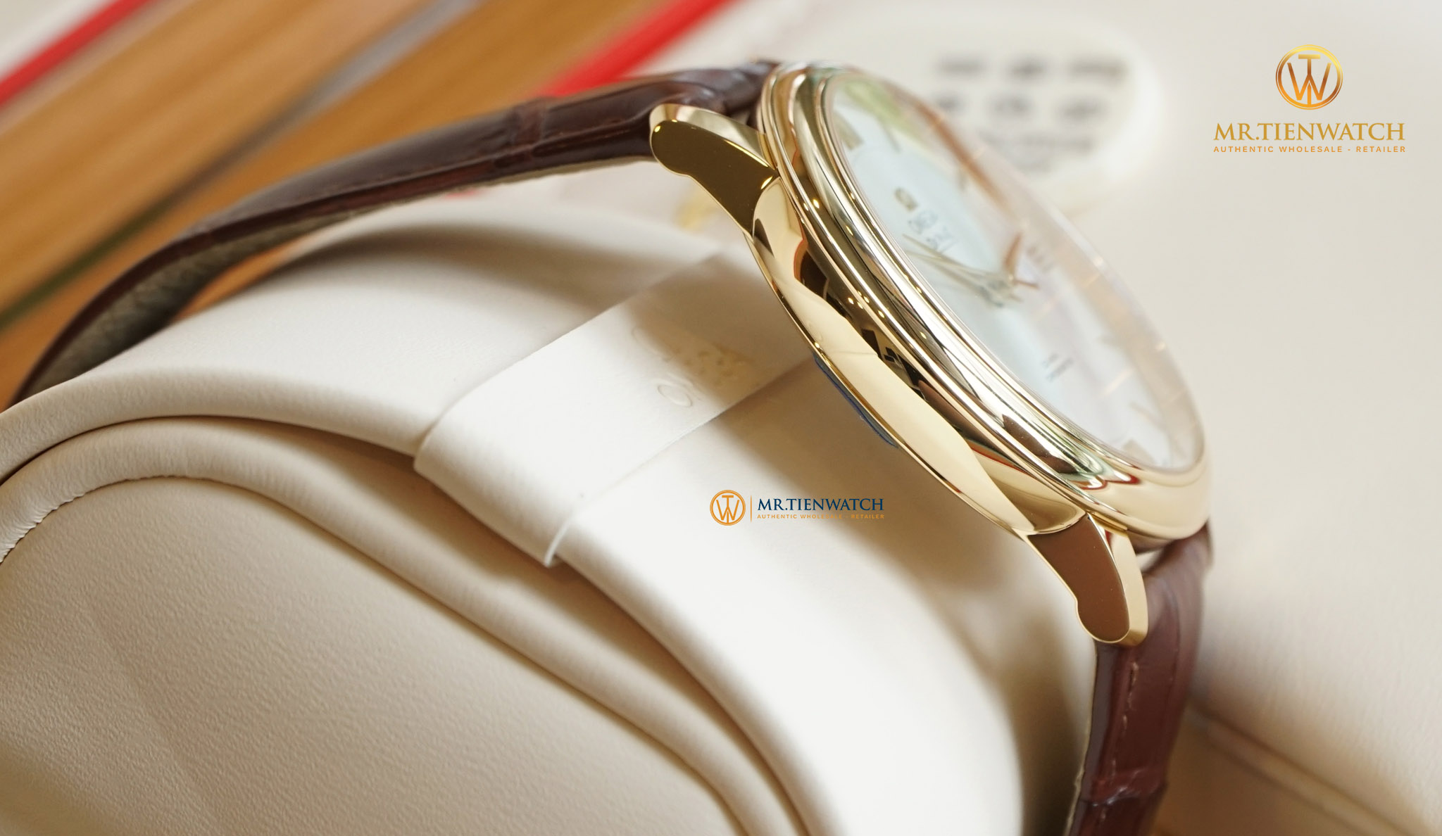 Đã là DressWatch (đồng hồ công sở) thì yếu tố sang trọng, lịch sự chưa phải là tất cả, mà hơn thế nữa đó phải là sự tiện dụng khi sử dụng, có nghĩa là Khách hàng có thể đeo liên tục, có thể làm việc với máy tính, đi họp...nhiều giờ trên tay mà không cảm thấy cộm, vướng hay khó chịu. Và với mẫu đồng hồ này thì case vỏ là 39.5 mm (không tính núm) sẽ rất thoải mái khi lên tay, bộ dây cũng được Hãng thiết kế lại với 100% là da thật tự nhiên cả 2 mặt, rất mềm mại, mỏng và ôm tay... hoàn hảo khi sử dụng với khóa Classic truyền thống.