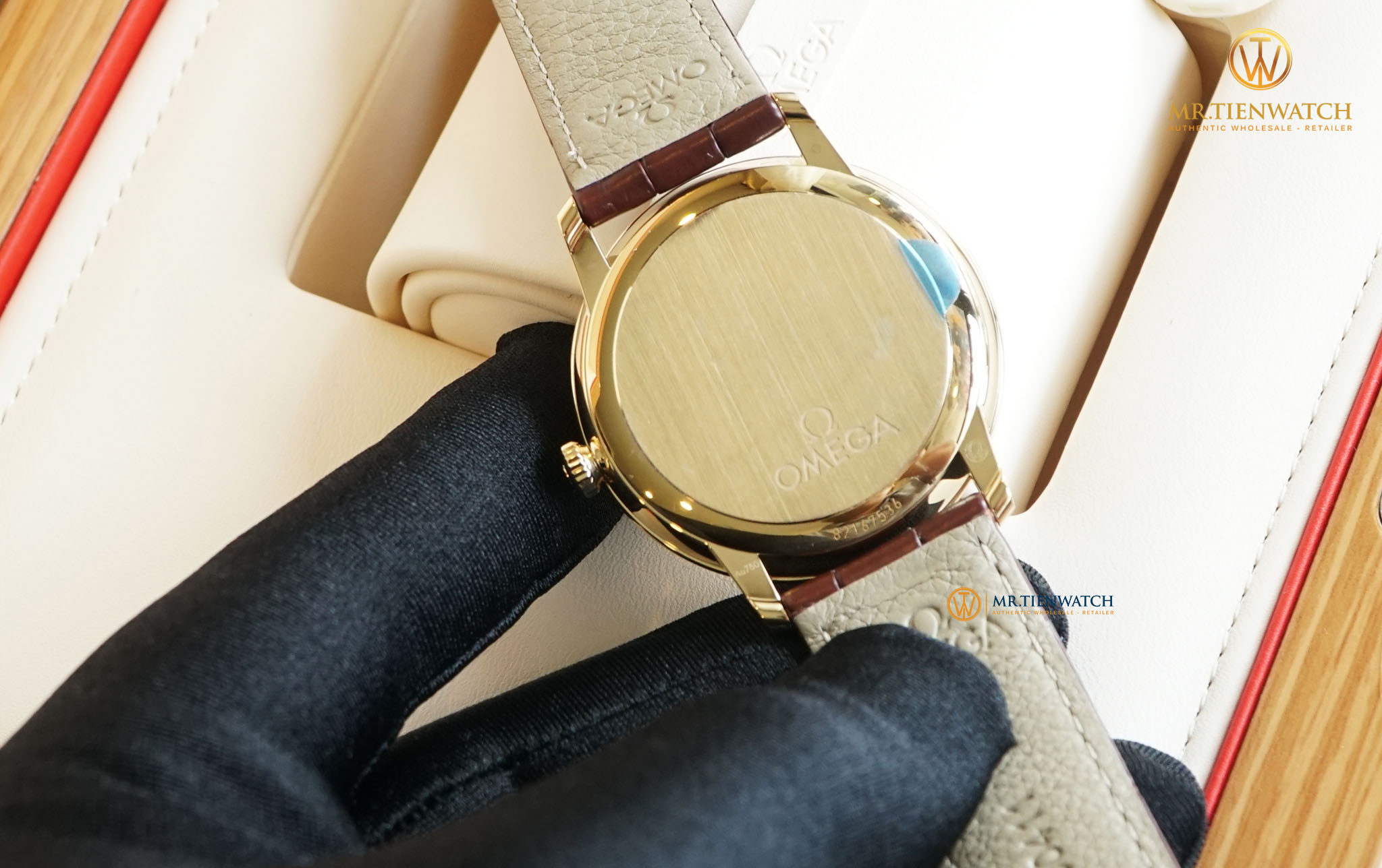 Trên tay chúng tôi là một trong những mẫu đồng hồ kinh điển không chỉ của riêng Omega, mà còn là chuẩn mực của thiết kế DressWatches (đồng hồ công sở) đương đại. Mặc dù thiết kế này đã có từ hàng trăm năm nhưng mỗi thương hiệu đều có một nét riêng, với Omega thì đã là chuẩn mực của sự tinh tế cùng mức độ hoàn thiện sản phẩm vô cùng sắc nét. Toàn bộ vỏ đồng hồ đều được làm từ vàng 18k yellow gold nguyên khối, cả núm đồng hồ, phần khóa cũng như nắp đậy cũng là vàng khối được đánh bóng một phần, làm sước mờ một phần rất chau chuốt.