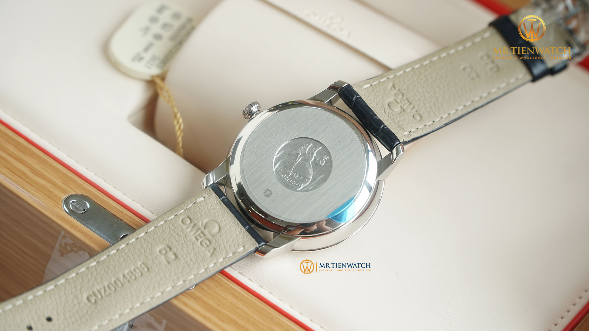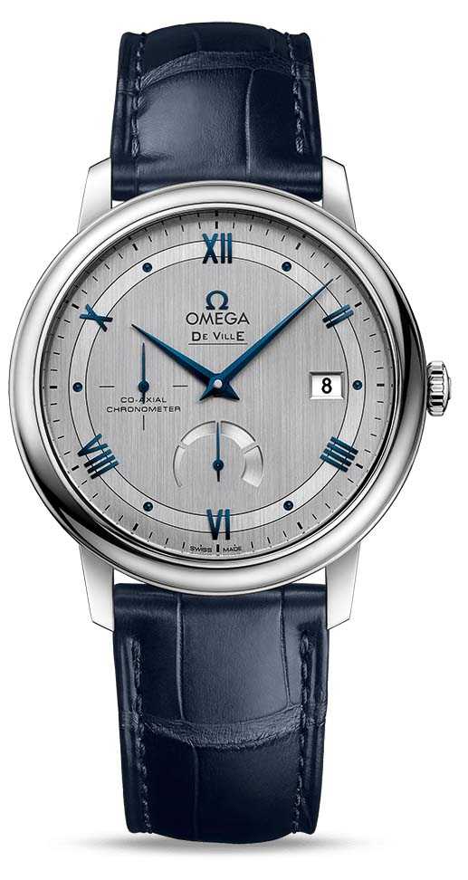 Bộ sưu tập OMEGA De Ville Prestige với thiết kế thanh lịch, cổ điển luôn thu hút một lượng lớn những Khách hàng trung niên, là những Chính Khách, Doanh nhân thành đạt hay đơn giản chỉ là yêu cầu sự sang trọng, tinh tế có chiều sâu và những mẫu đồng hồ De Ville Prestige cổ điển là một trong những lựa chọn không thể hoàn hảo hơn. Mã sản phẩm là OMEGA 424.13.40.21.02.003 có mặt số màu xám bạc hai tầng ấn tượng. Mặt số được bảo vệ bởi lớp kính sapphire chống trầy xước với cửa sổ ngày ở vị trí 3 giờ và ô hiển thị mức dự trữ năng lượng ở vị trí 6 giờ. Toàn bộ vỏ được làm bằng thép không gỉ cao cấp có đường kính mặt là 39.5 mm, kết hợp hoàn hảo cùng dây da cá sấu màu xanh. Trái tim trung tâm cung cấp năng lượng cho mẫu đồng hồ này là bộ chuyển động Calibre 2627 Co-Axial đạt chuẩn Chronometer chính xác.