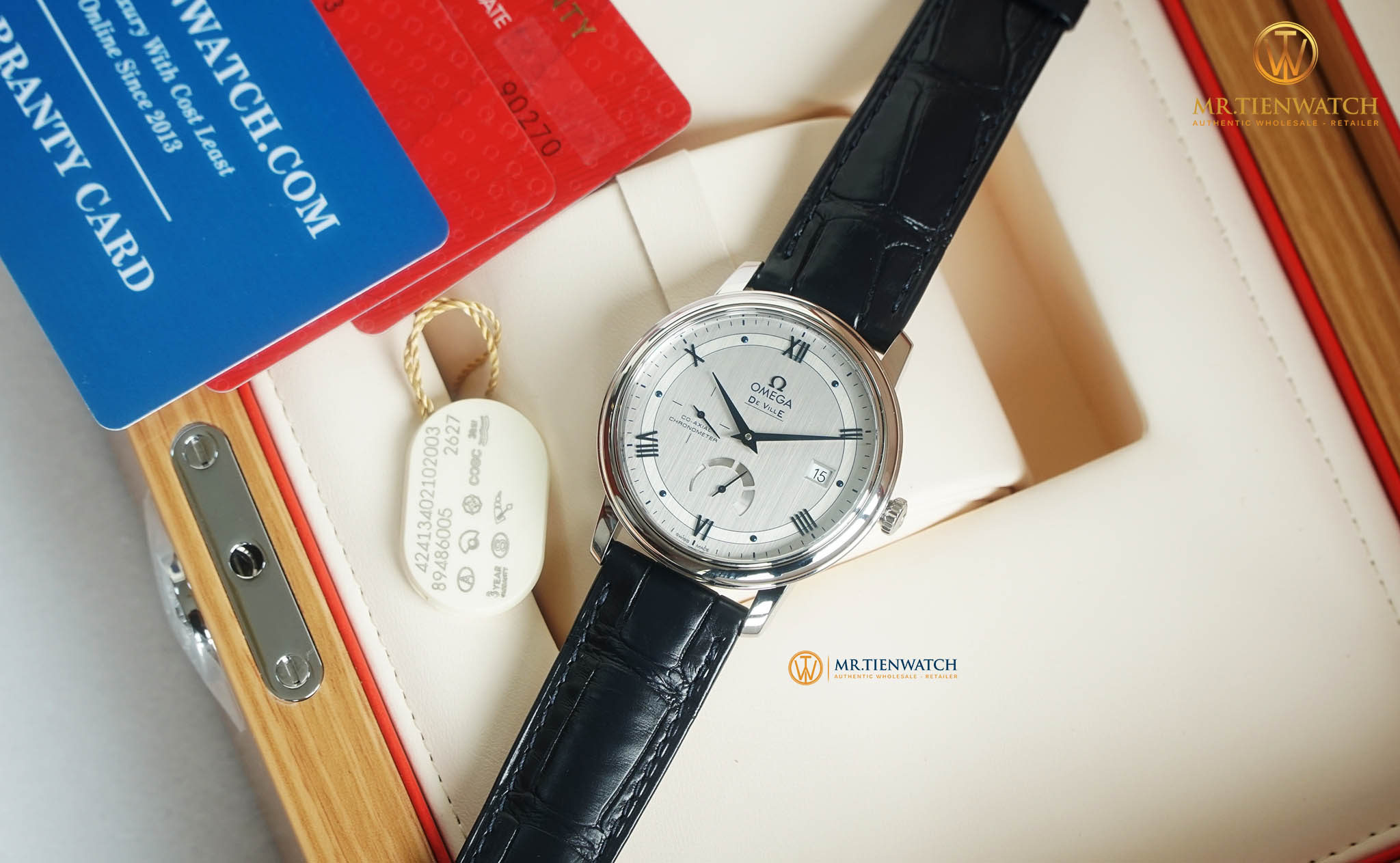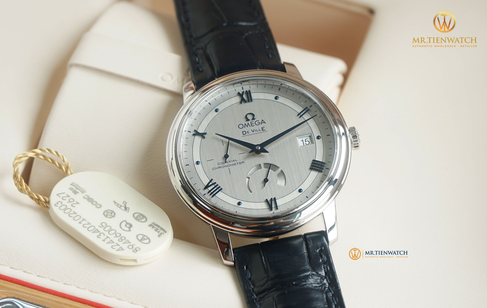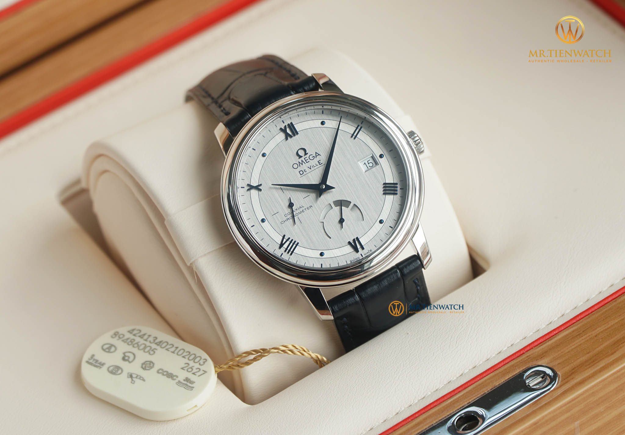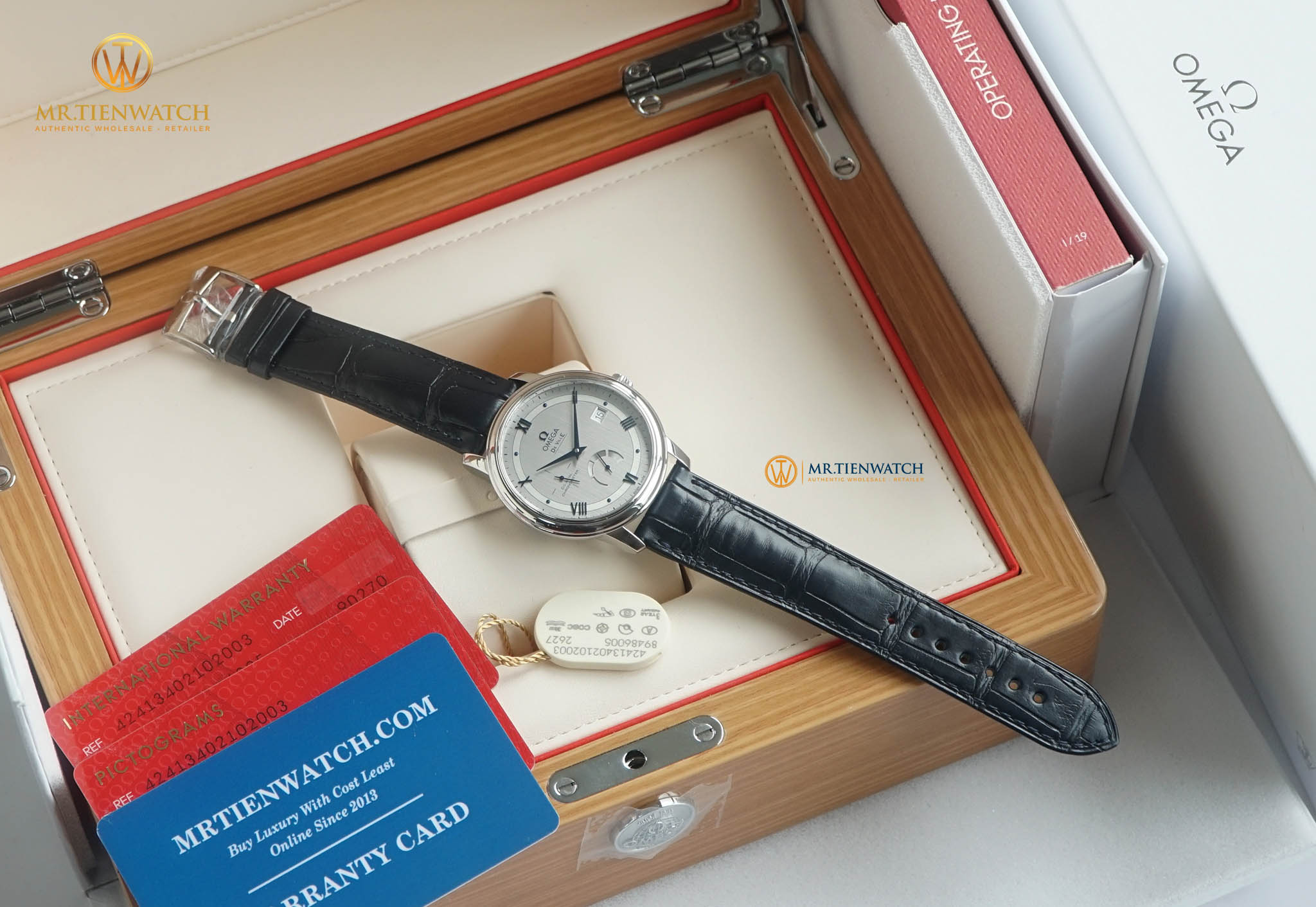 Đồng hồ Chính Hãng OMEGA DE-VILLE PRESTIGE CO‑AXIAL POWER RESERVE 39.5 MM 424.13.40.21.02.003 (42413402102003) do chúng tôi phân phối 100% là mới tinh, fullbox, được đặt mua từ những Đại Lý Phân Phối Chính Hãng lớn ở Châu Âu, có đầy đủ sổ thẻ bảo hành quốc tế chính hãng (có dấu của Đại Lý Ủy Quyền Phân Phối).