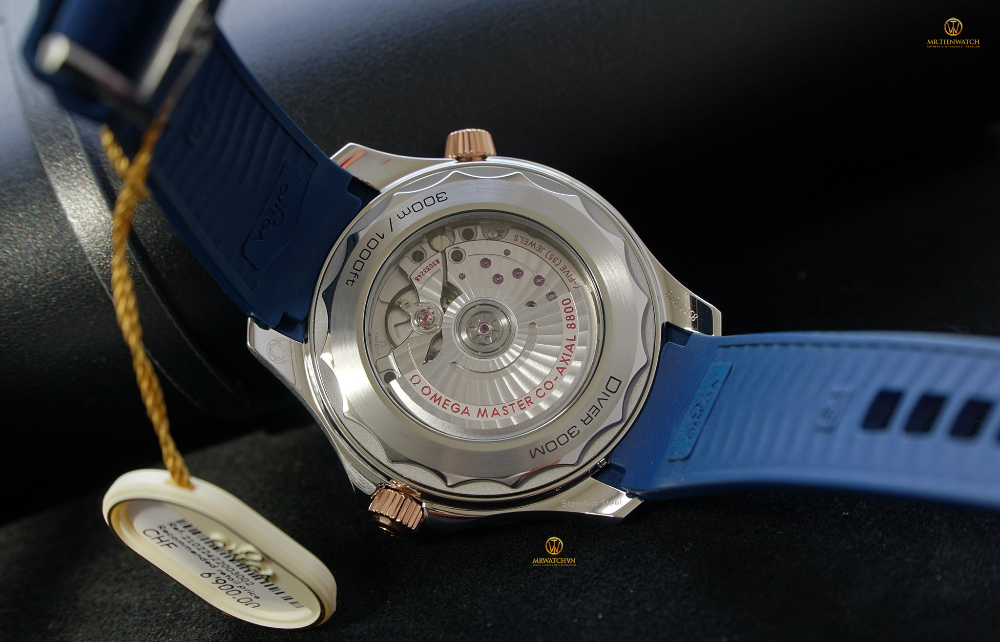 Chỉ là vấn đề thời gian trước khi Omega bắt đầu sử dụng một trong những bộ chuyển động được họ tự phát triển và sản xuất. Bộ chuyển động này chứa đựng tất cả những đổi mới và công nghệ tiên tiến nhất mà Omega đã giới thiệu: Lò xo cân bằng silicon Si14, chống từ lên đến 15.000 gauss và dự trữ năng lượng trong 55 giờ. Tất nhiên, bộ chuyển động này cũng có công nghệ co-axial, nhưng được cải thiện so với chuyển động được tìm thấy trong bộ chuyển động caliber 2500. Trong chiếc đồng hồ Seamaster 300M Diver mới, bạn có thể nhìn thấy calibre 8800 ở mặt sau qua vỏ kính sapphire.
