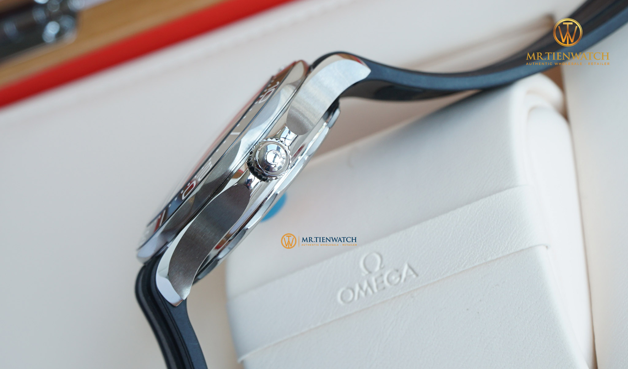 + OMEGA 210.32.42.20.03.001 dây cao su, mặt số xanh navy