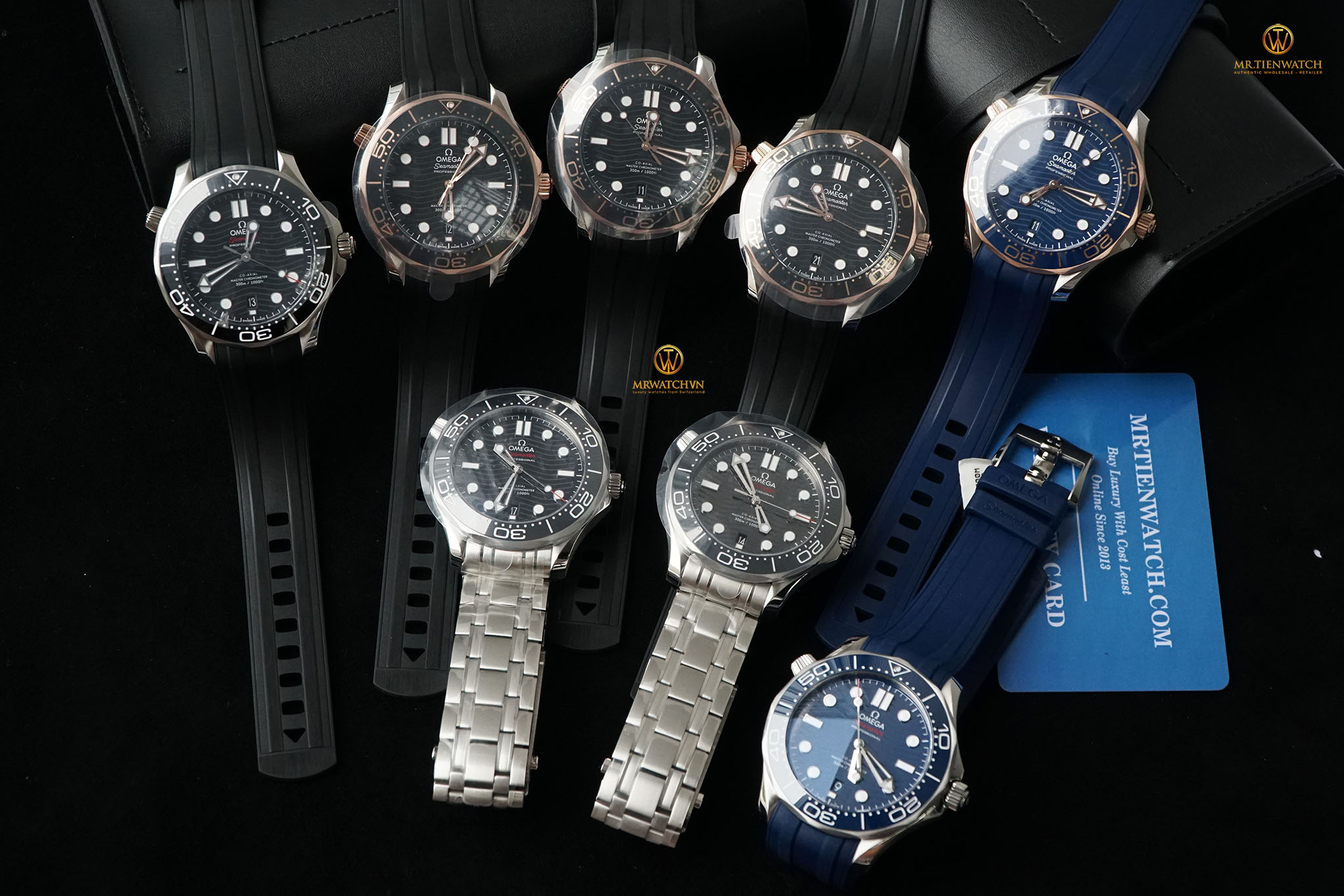 Mẫu Omega chúng tôi giới thiệu là phiên bản dây cao su, mặt đen. Ngoài ra bộ sưu tập còn rất phong phú với mầu xanh và ghi xám. Phiên bản cao cấp hơn có thêm niềng đồng hồ là vàng đỏ hoặc vàng 18k truyền thống làm tăng độ sang trọng của sản phẩm. Quý khách quan tâm có thể tham khảo thêm gần như đủ bộ sưu tập Omega Seamaster mà chúng tôi đã về stock tại đây: