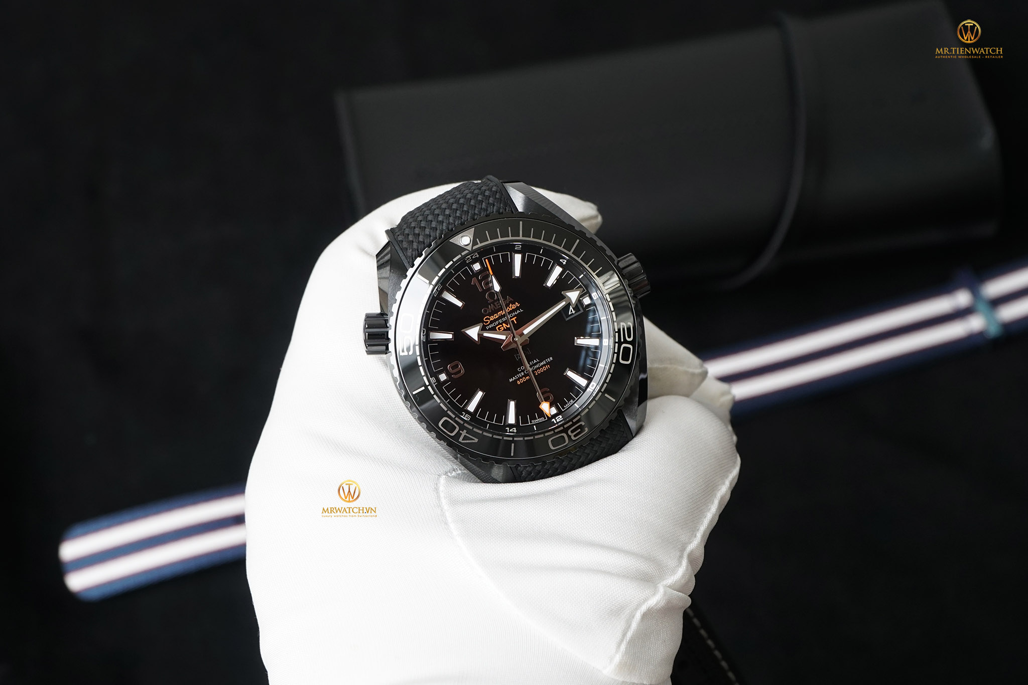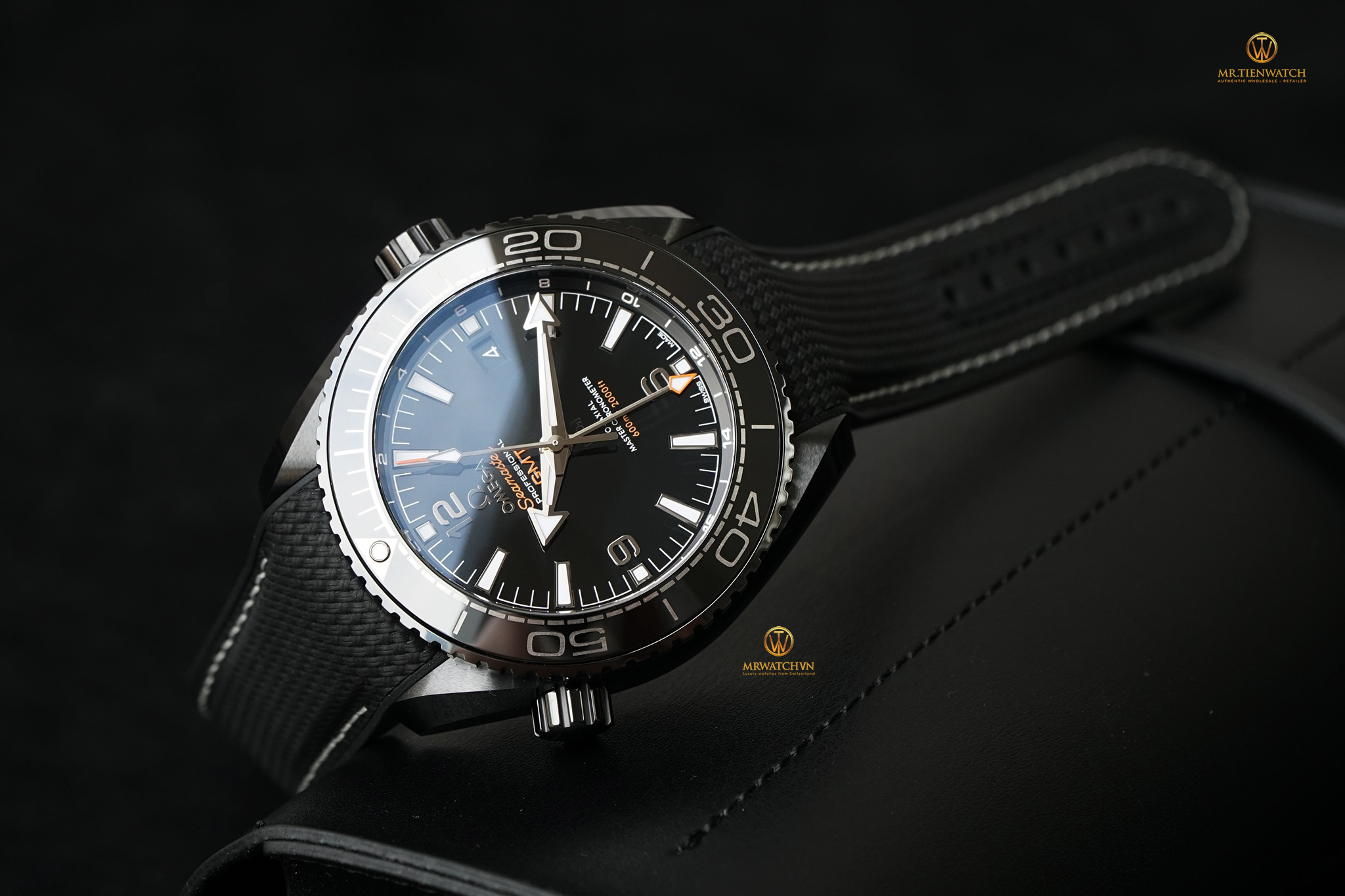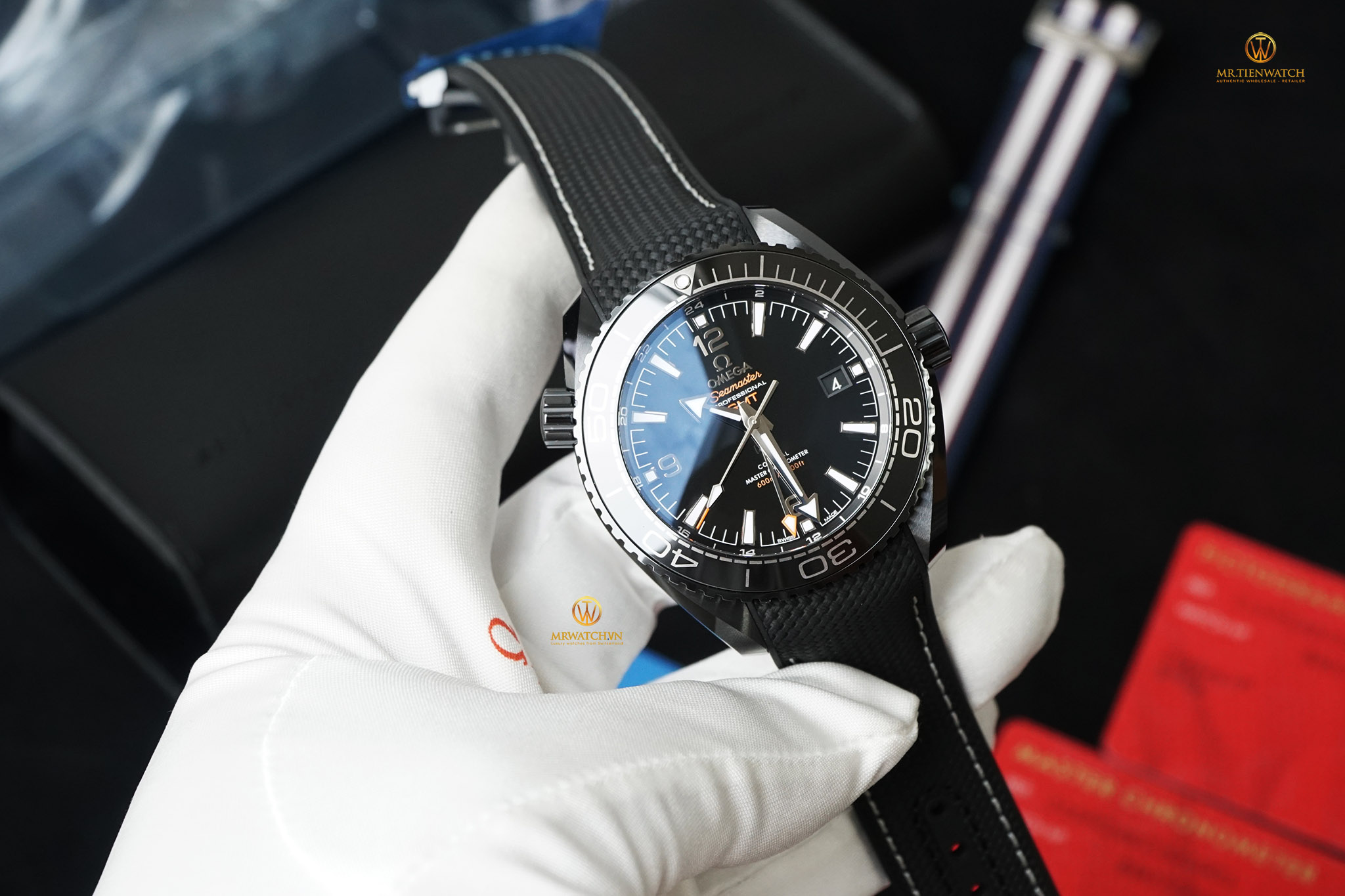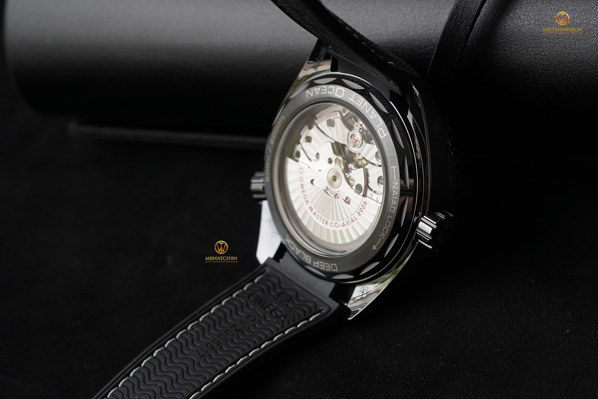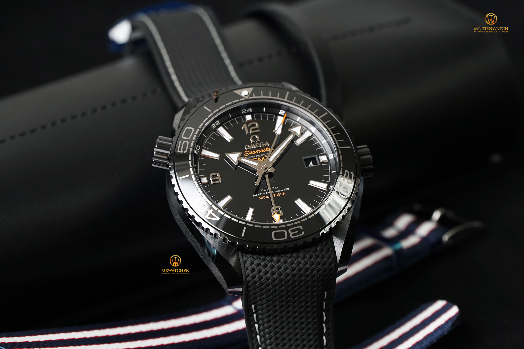 Omega Seamaster Planet Ocean “Deep black” 215.92.46.22.01.001 được làm từ gốm nguyên khối. Viền, núm vặn, thậm chí mặt số cũng đều được làm từ chất liệu gốm đen. Với đường kính lên đến 45,5 mm và độ dày 18mm, đây là mẫu đồng hồ có kích cỡ lớn, nhưng vì được làm hoàn toàn từ gốm nên cảm giác nhẹ hơn đáng kể so với thép không gỉ. Khả năng chống nước vô cùng ấn tượng lên tới 600 mét cùng với van xả khí heli, Seamaster Planet Ocean “Big Blue” là mẫu đồng hồ lặn chuyên nghiệp tuyệt vời.