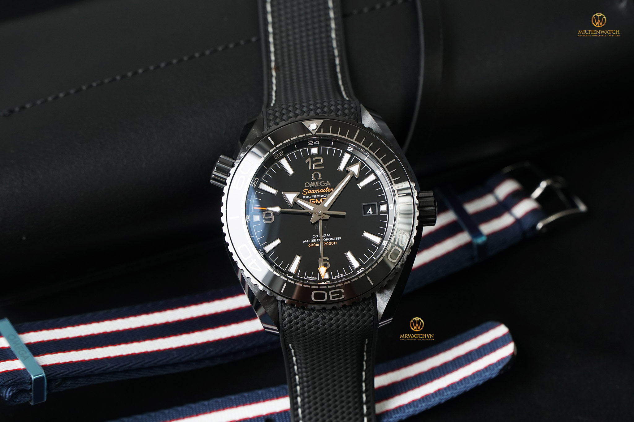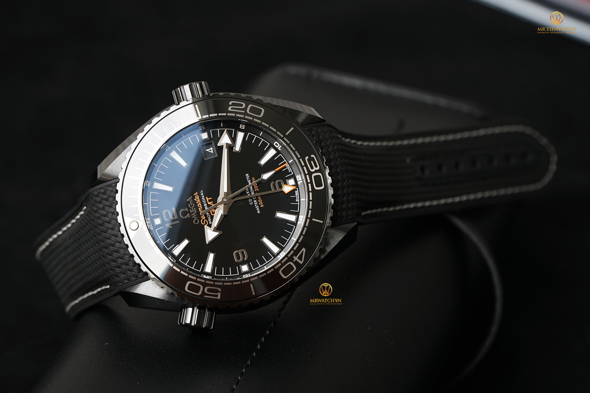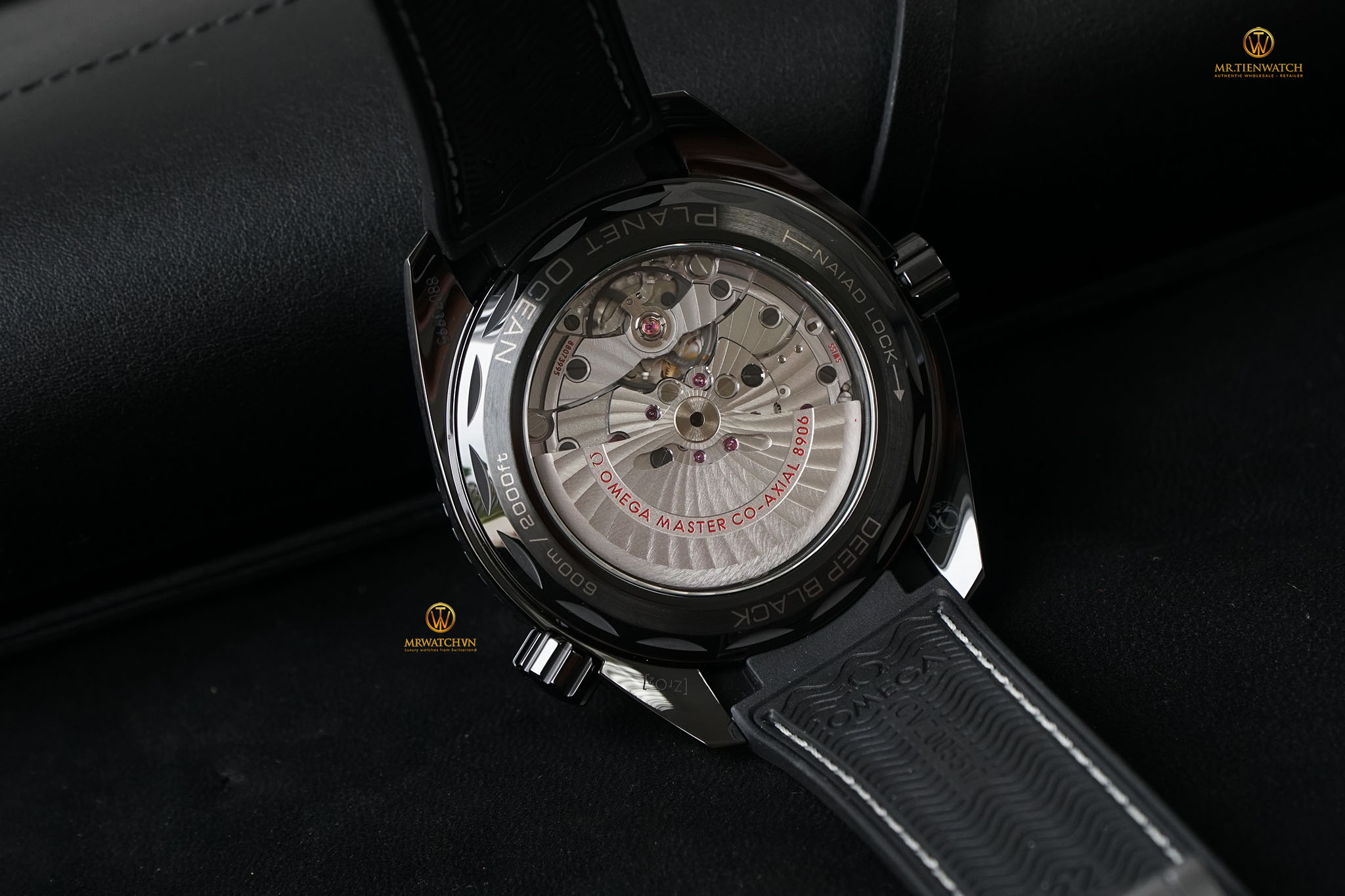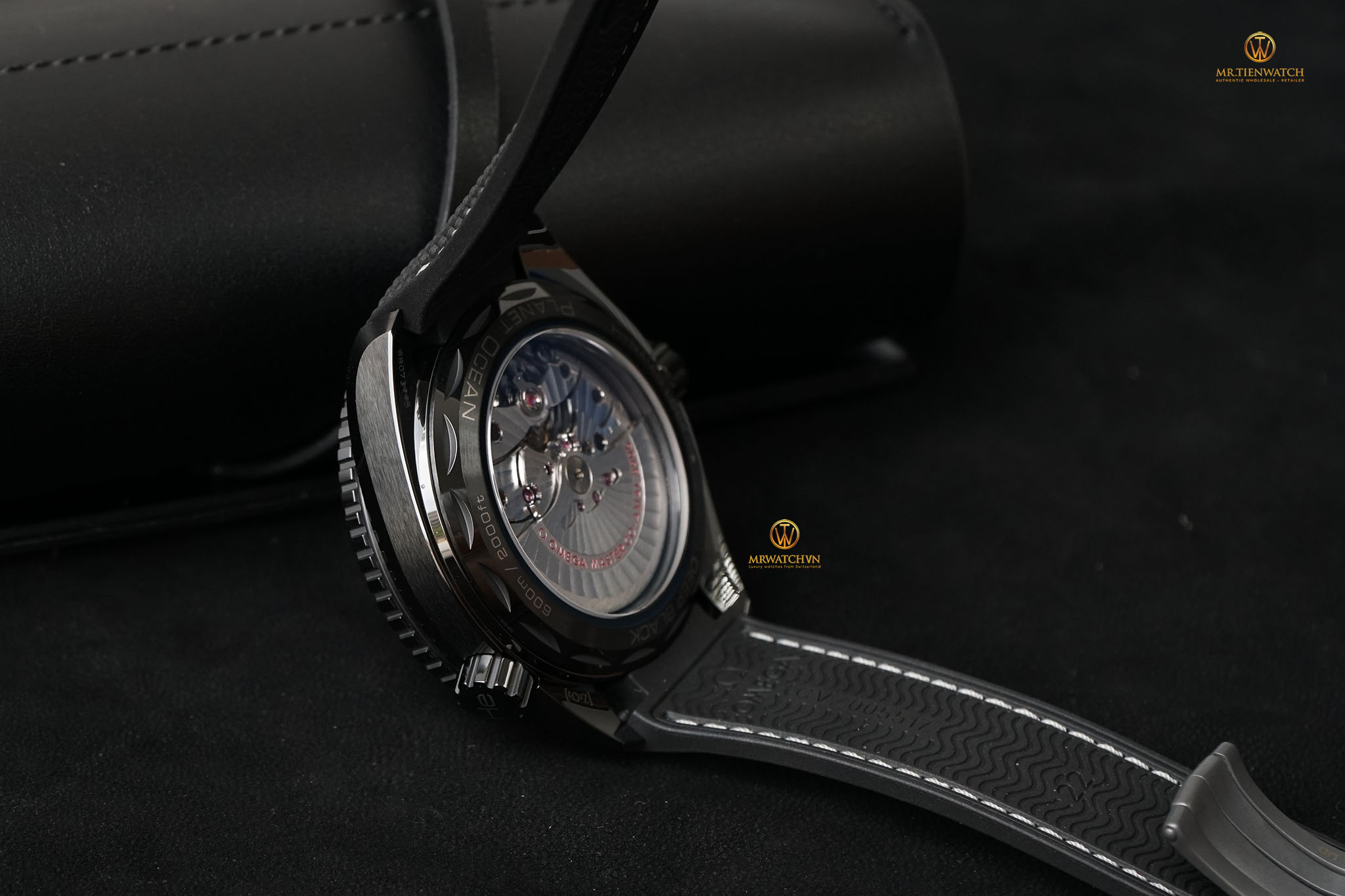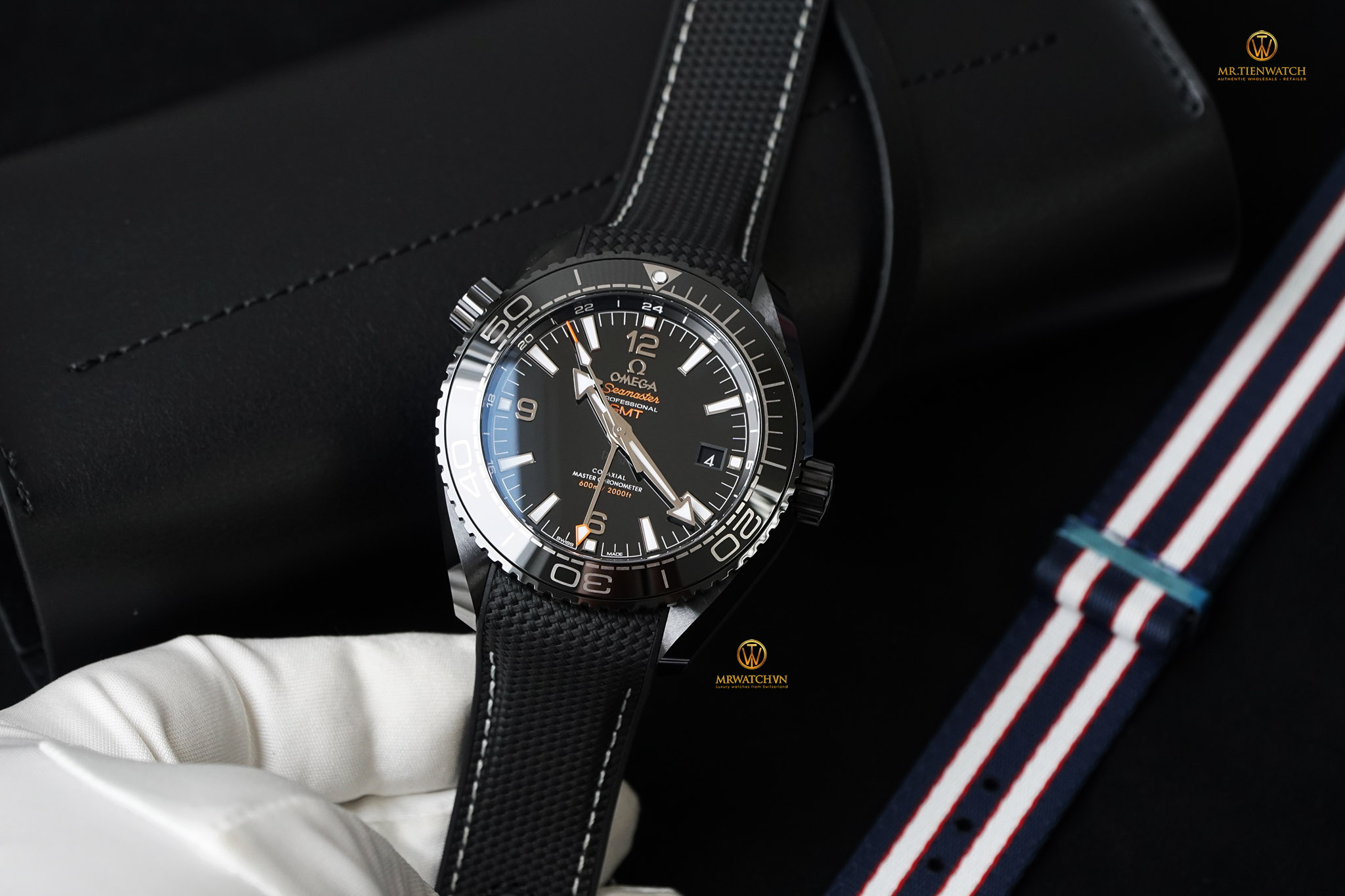 Omega Seamaster Planet Ocean “Deep black” 215.92.46.22.01.001 được làm từ gốm nguyên khối. Viền, núm vặn, thậm chí mặt số cũng đều được làm từ chất liệu gốm đen. Với đường kính lên đến 45,5 mm và độ dày 18mm, đây là mẫu đồng hồ có kích cỡ lớn, nhưng vì được làm hoàn toàn từ gốm nên cảm giác nhẹ hơn đáng kể so với thép không gỉ. Khả năng chống nước vô cùng ấn tượng lên tới 600 mét cùng với van xả khí heli, Seamaster Planet Ocean “Big Blue” là mẫu đồng hồ lặn chuyên nghiệp tuyệt vời.