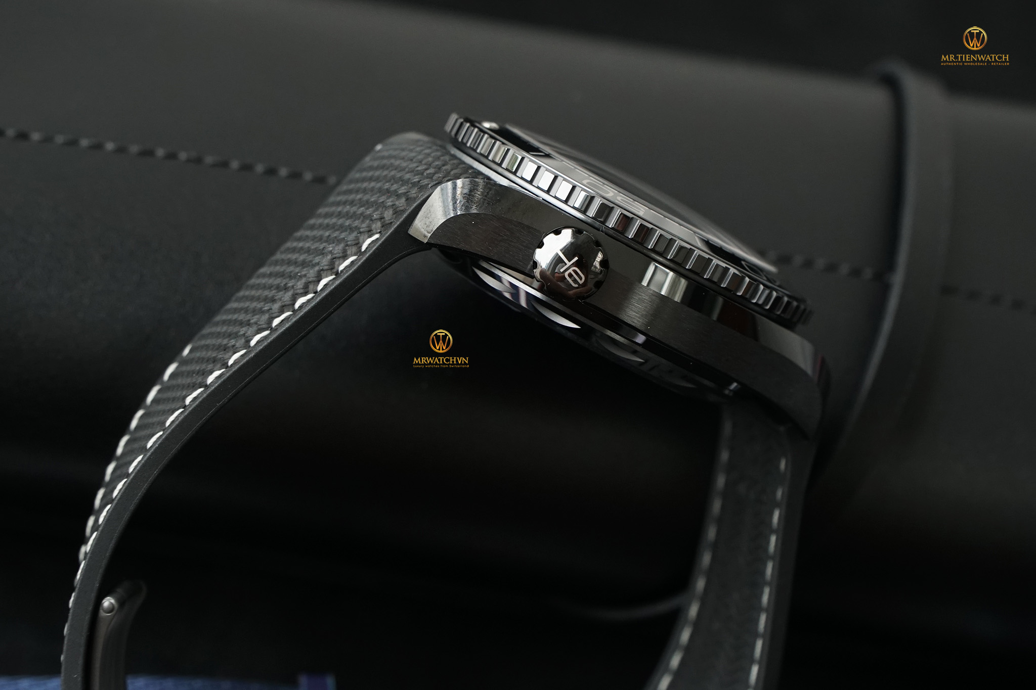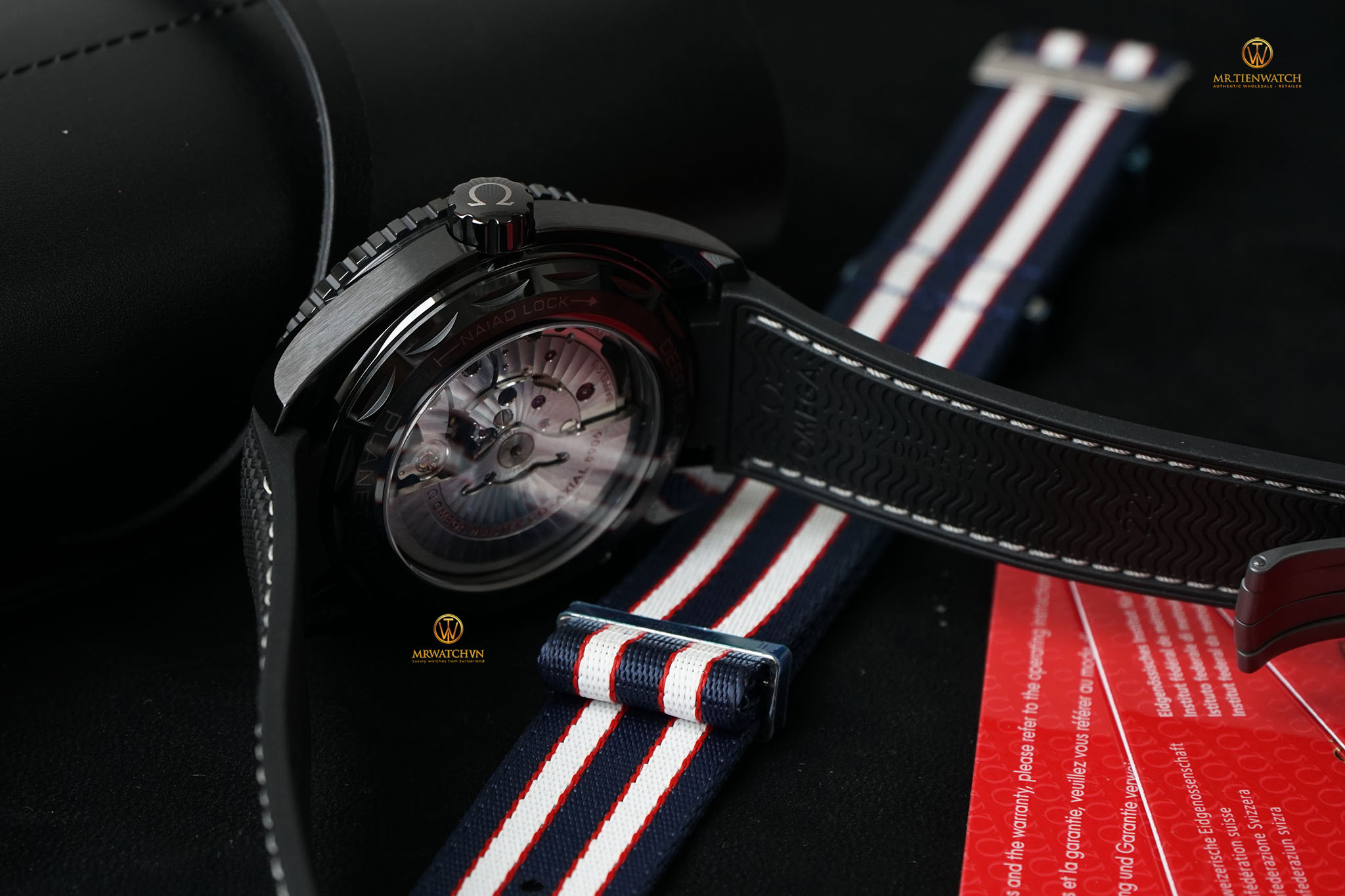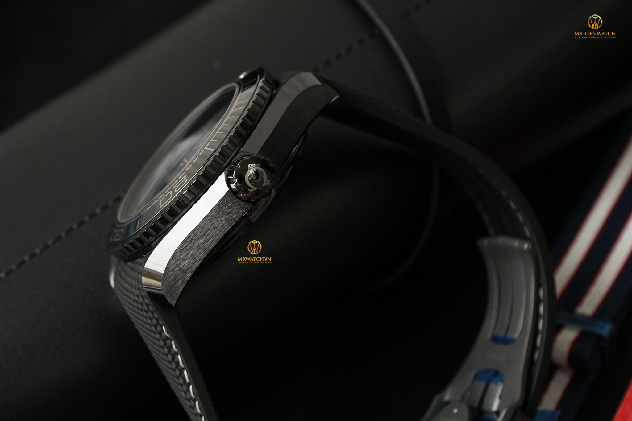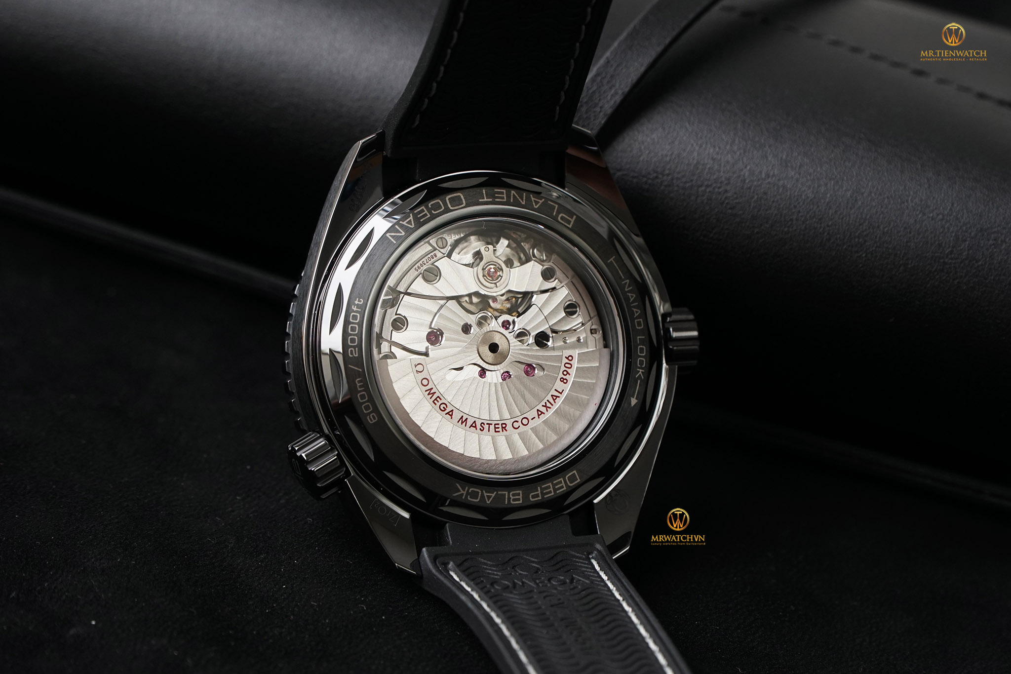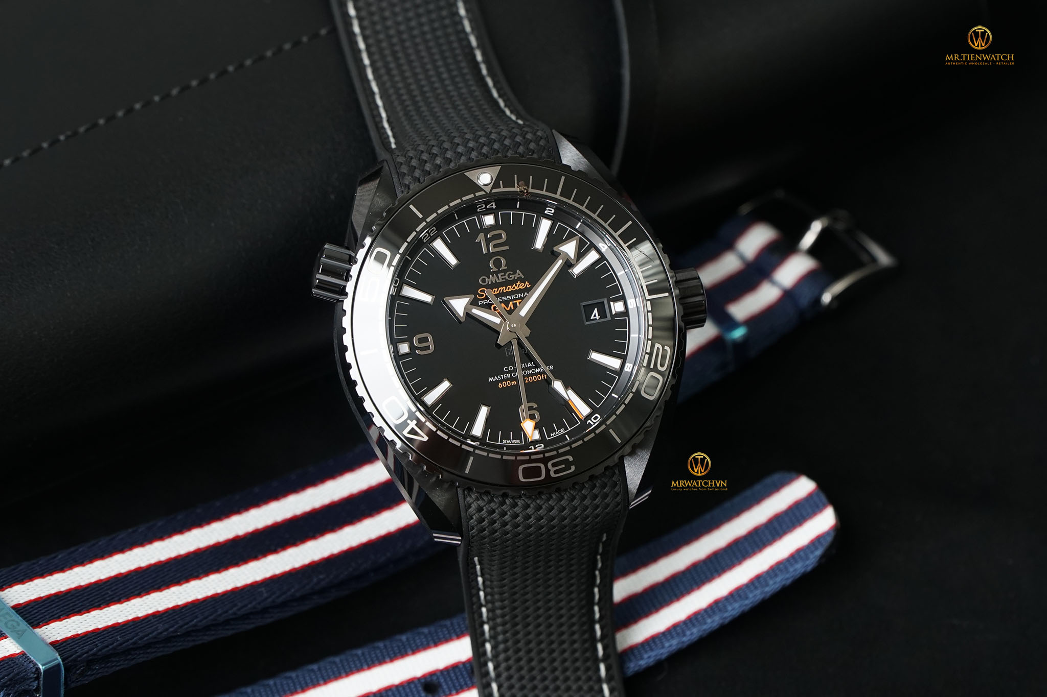 Omega Seamaster Planet Ocean “Deep black” 215.92.46.22.01.001 được làm từ gốm nguyên khối. Viền, núm vặn, thậm chí mặt số cũng đều được làm từ chất liệu gốm đen. Với đường kính lên đến 45,5 mm và độ dày 18mm, đây là mẫu đồng hồ có kích cỡ lớn, nhưng vì được làm hoàn toàn từ gốm nên cảm giác nhẹ hơn đáng kể so với thép không gỉ. Khả năng chống nước vô cùng ấn tượng lên tới 600 mét cùng với van xả khí heli, Seamaster Planet Ocean “Big Blue” là mẫu đồng hồ lặn chuyên nghiệp tuyệt vời.