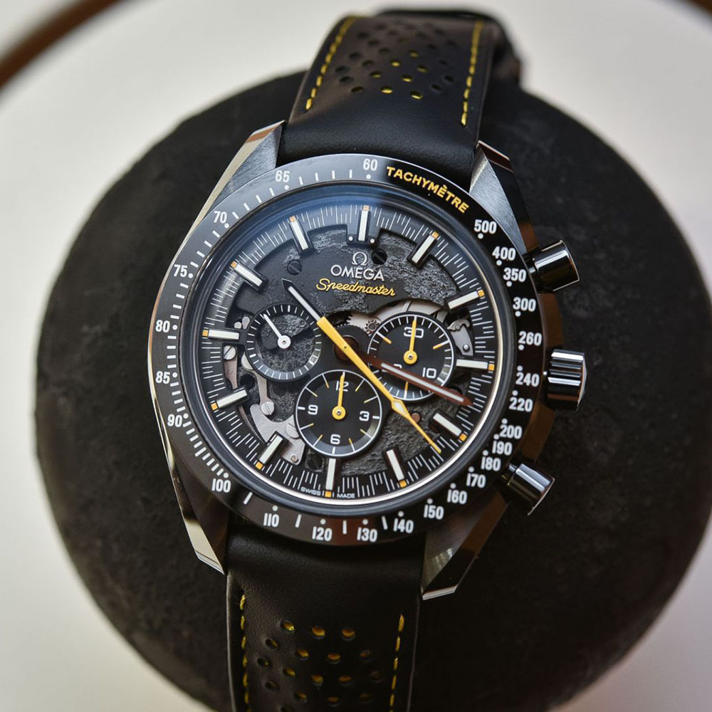 OMEGA Speedmaster là một biểu tượng thực sự về sứ mệnh không gian vũ trụ, mang đậm tinh thần tiên phong của OMEGA và còn ấn tượng hơn nữa nếu có riêng một phiên bản làm hoàn toàn từ Ceramic đen kết hợp với nguyên liệu từ mặt trăng.