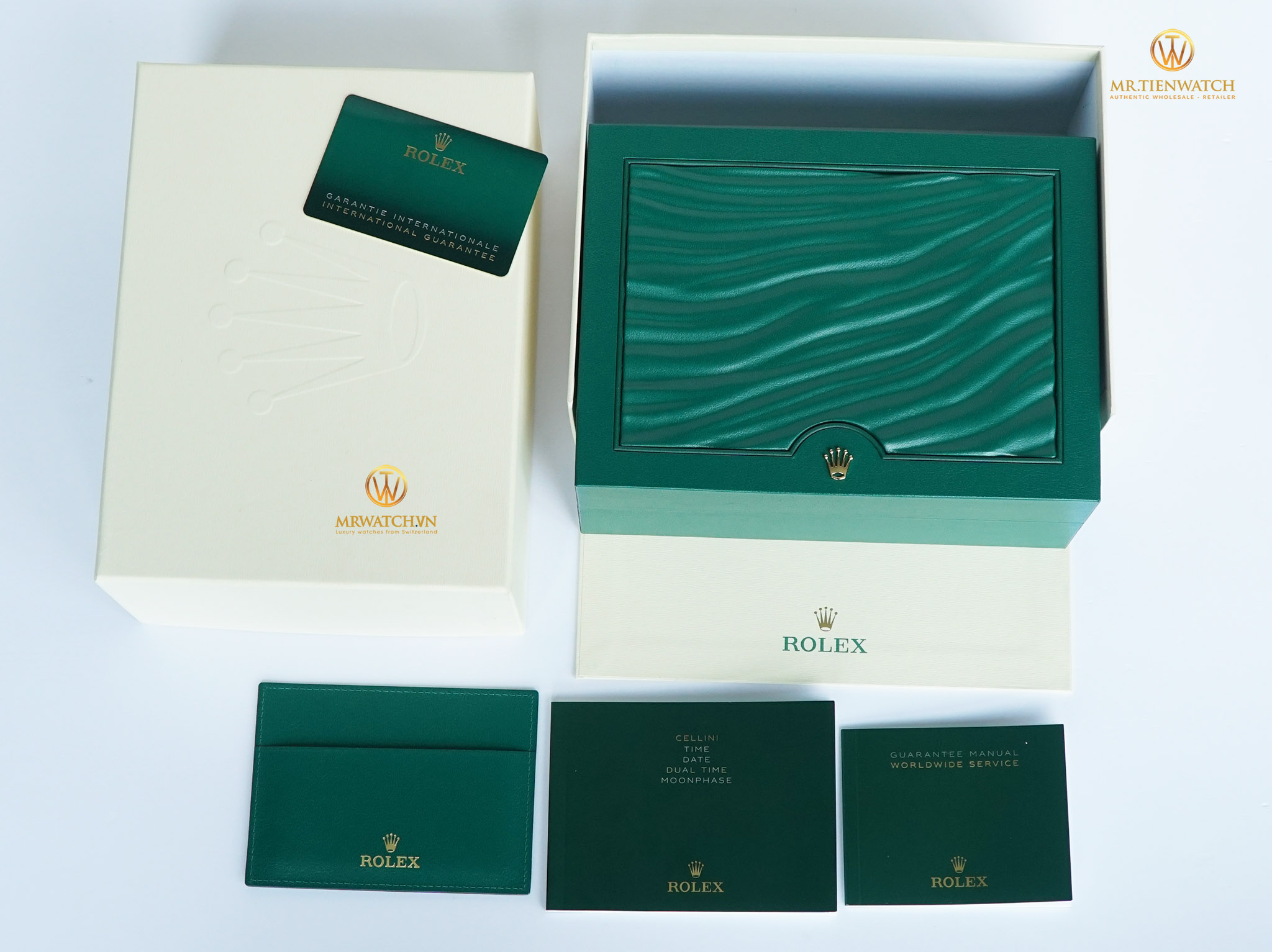 Chúng tôi có thể đặt mua bất kì một mẫu Rolex nào từ Hãng với chiết khấu giá tốt nhất. Tất cả bộ sưu tập niêm yết tại mrwatch.vn đều là các model mới nhất. Sản phẩm được đặt mua trực tiếp từ các Đại Lý Phân Phối Ủy Quyền lớn ở Châu Âu, Fullbox, Brandnew, đầy đủ hộp sổ thẻ bảo hành quốc tế chính Hãng Rolex.