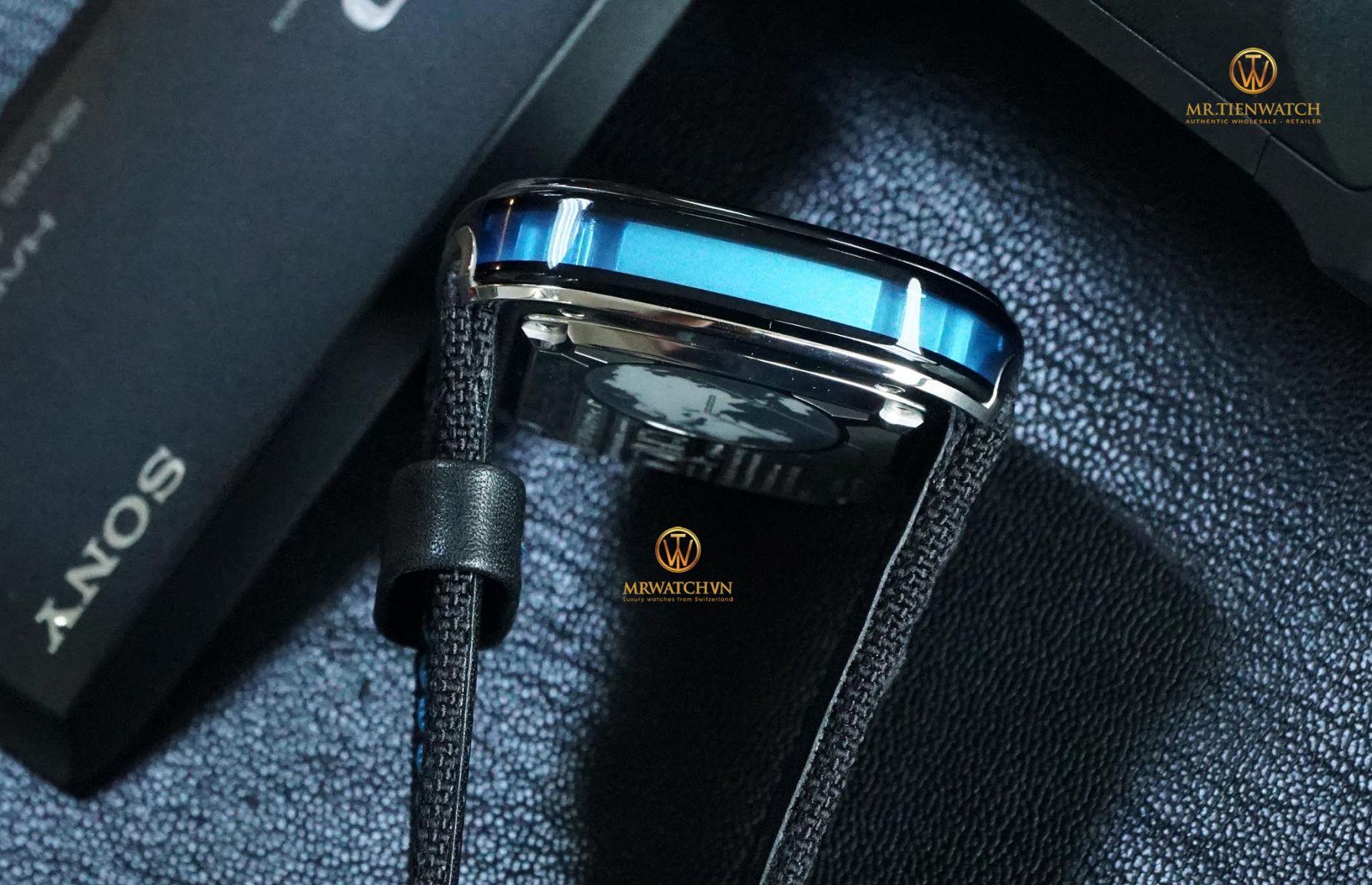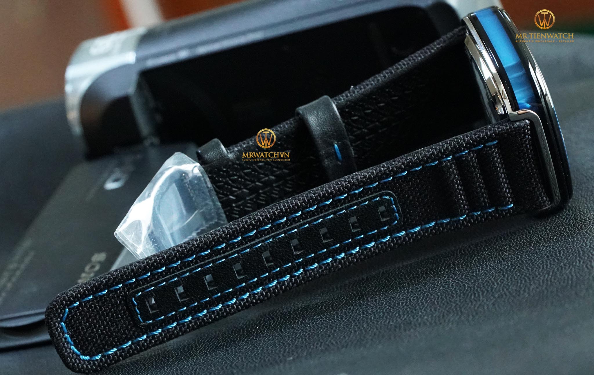 SevenFriday Beach Club PC3/03 được trang bị bộ máy Miyota 82s7 tự động, có khả năng dự trữ năng lượng lên tới 40 giờ. Miyota 82s7 là bộ chuyển động bền bỉ và nhịp nhàng, có khả năng thu lại mọi chuyển động cánh tay bạn - bơi lội hoặc chơi tennis – và biến chúng thành năng lượng để đồng hồ vận hành hiệu quả, ổn định nhất. SevenFriday lựa chọn cho Beach Club PC3/03 bộ dây đeo bằng da bê đen kết hợp với vải rembordé đen cùng đường chỉ khâu màu xanh lam.