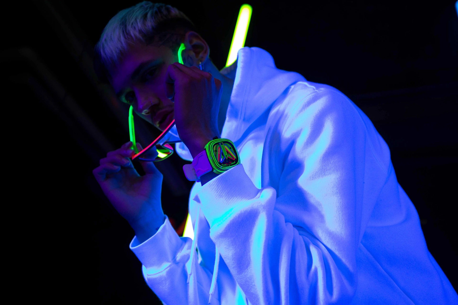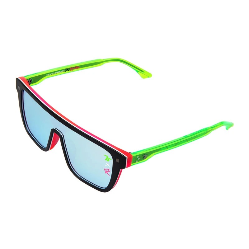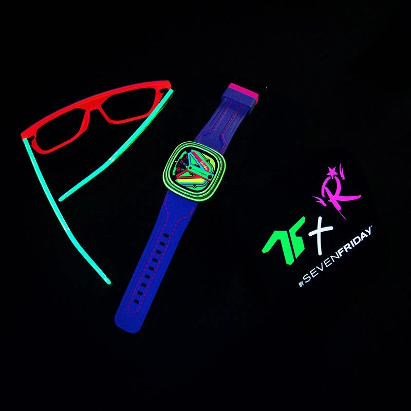 Ngoài ra, đi kèm với mỗi chiếc SevenFriday x Rocketbyz là một cặp kính râm và một chiếc ba lô chống thấm nước dành riêng cho bộ collab. Cặp kính râm sở hữu mắt kính chống lóa và chống tia UV hoàn toàn, và cũng được phủ lớp sơn dạ quang, cũng như phối màu đen - xanh neon - hồng neon đặc trưng. Những điều này lại càng khiến chủ nhân thêm nổi bật giữa đám đông. Mỗi chiếc đồng hồ và cặp kính của collab đều đi kèm với con chip NFC, giúp chủ nhân xác thực và đăng kí sản phẩm dễ dàng, cũng như thể hiện sức sáng tạo vô tận của SevenFriday.