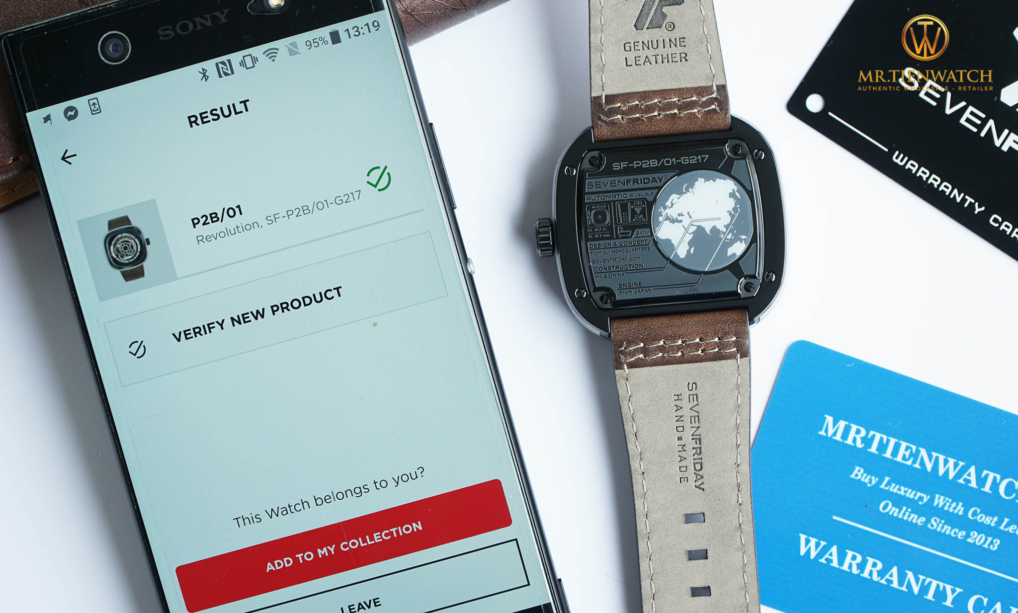 Mẫu P2B/01 cũng được trang bị chip NFC giúp phân biệt đồng hồ thật, giả qua SevenFriday App. Đây là ứng dụng đã được tích hợp lên các mẫu SevenFriday từ dòng V-series. Dây da bê màu nâu góp phần tăng vẻ lịch lãm và cổ điển cho các quý ông.